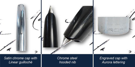 Aurora Duo Cart Black With Chrome Cap Fountain Pen