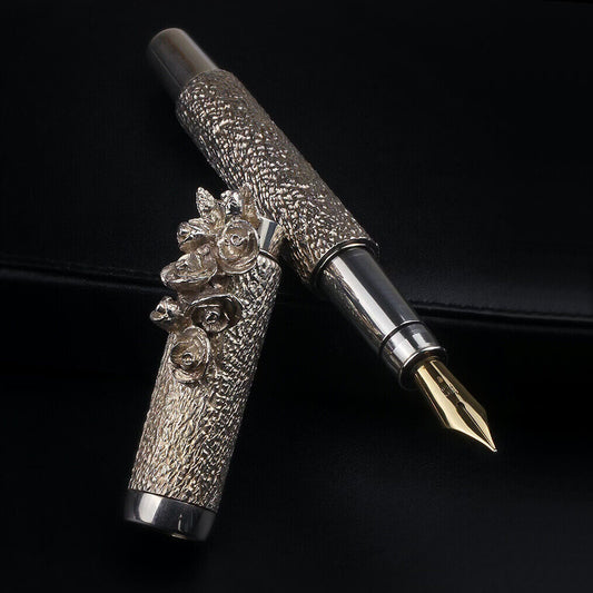 Michel Audiard Roses Sterling Silver Limited Edition Fountain Pen, early 1990s
