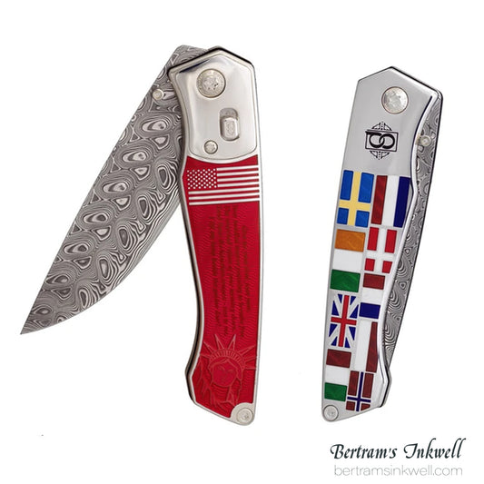 David Oscarson Ellis Island Translucent Ruby Red Hard Enamel Folding Knife