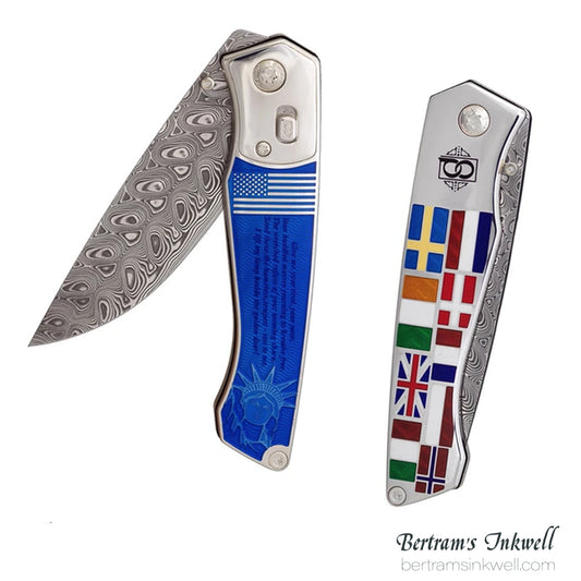 David Oscarson Ellis Island Translucent Sapphire Blue Hard Enamel Folding Knife