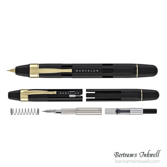 Nahvalur Eclipse Retractable Fountain Pen in Black with Gold Trim
