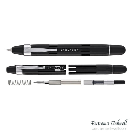 Nahvalur Eclipse Retractable Fountain Pen in Black with Silver Trim