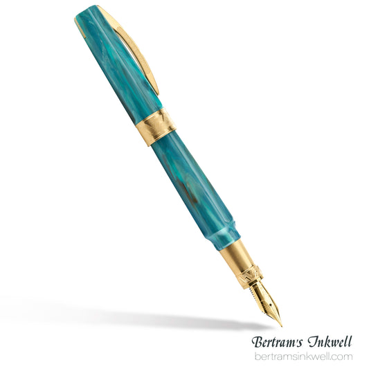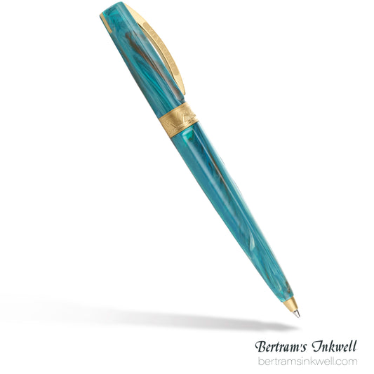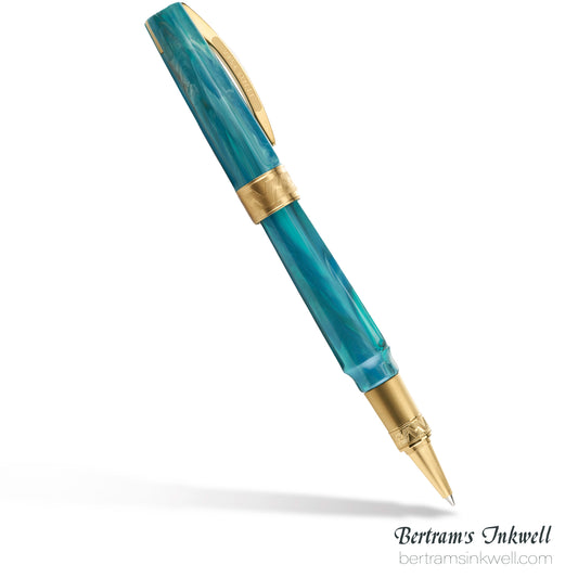 The Visconti Mirage Mythos Athena collection is available in fountain pen, rollerball, and ballpoint styles.