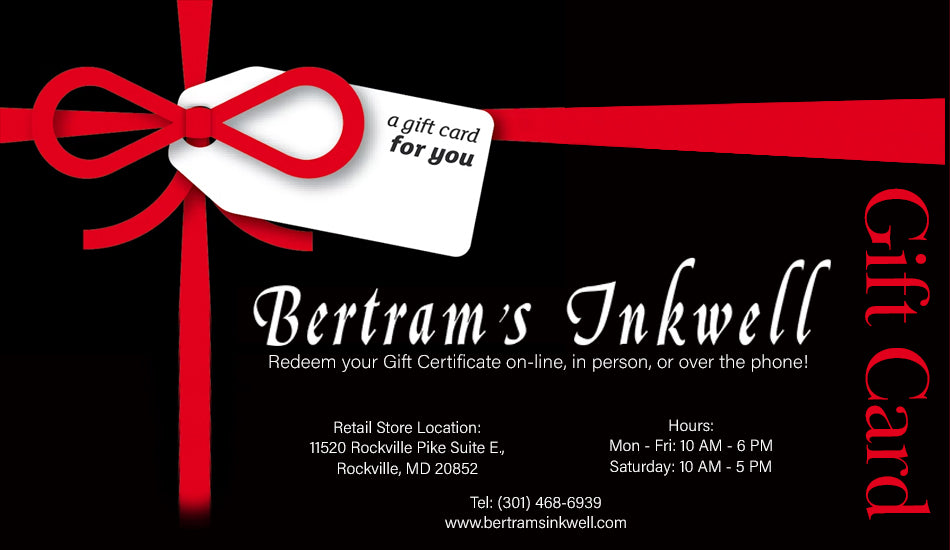 Bertram's Inkwell Gift Cards can be redeemed on-line, in person, or over the phone!
