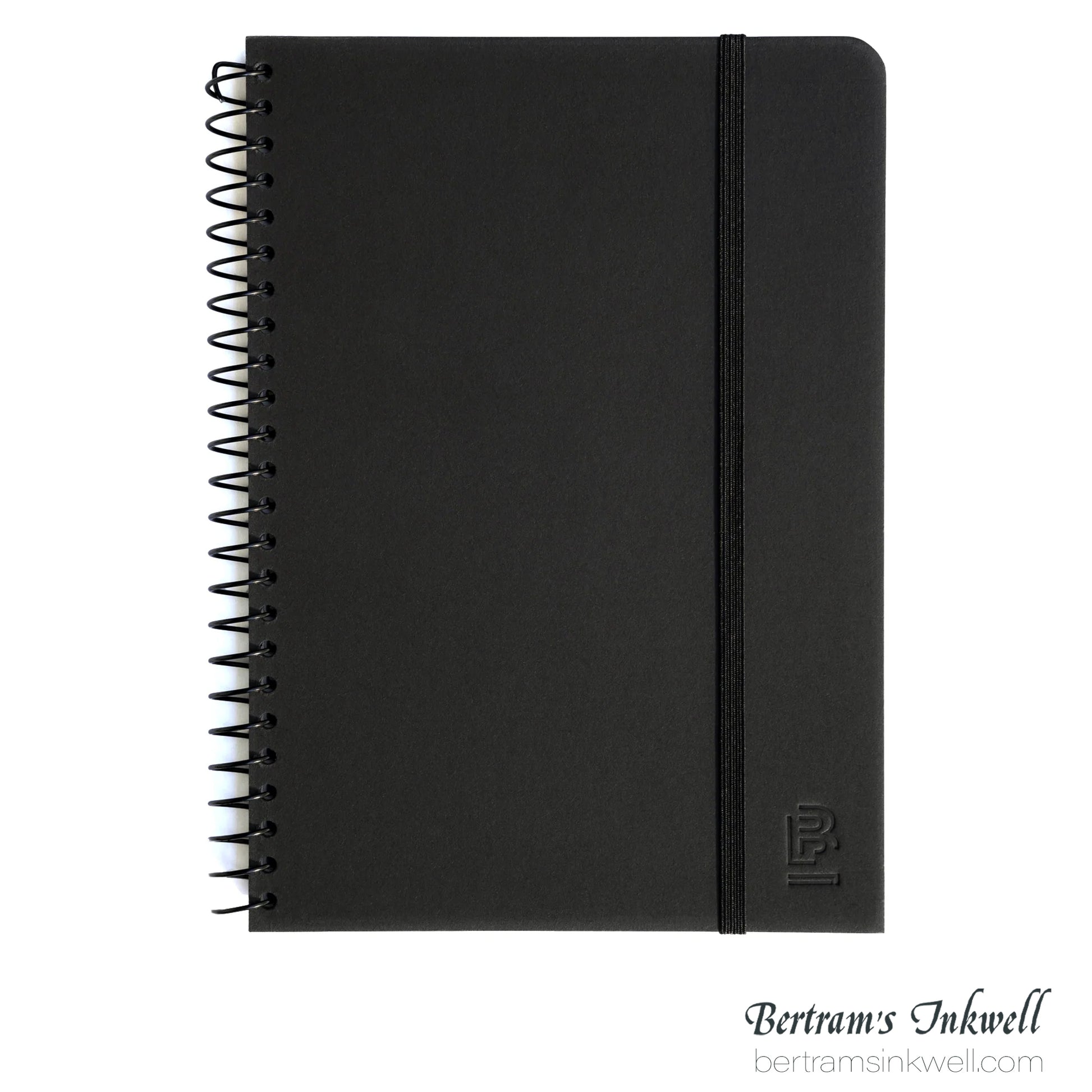 This is our take on the classic spiral-bound notebook in a compact A5 size. Each notebook features a black chipboard cover and a sturdy black wire spiral binding. Inside you'll find 160 pages of 80GSM paper that is available in blank, ruled, or dot-grid. The notebook comes with an elastic strap and features the Blackwing "B" emblem debossed on its cover.