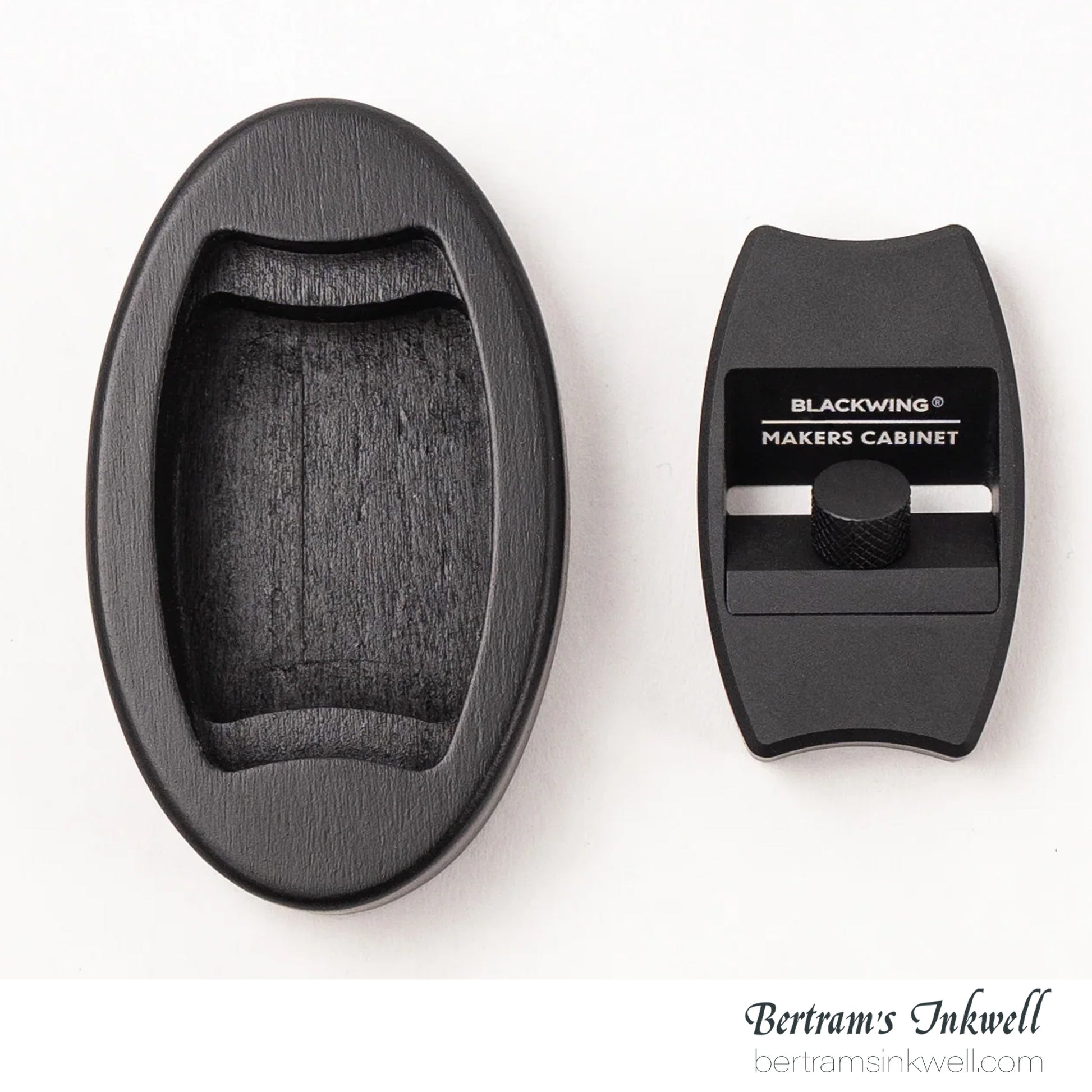 The Blackwing Høvel is made from black anodized aluminum and includes a matching black wooden base. This set also includes 10 carbon steel replacement blades.