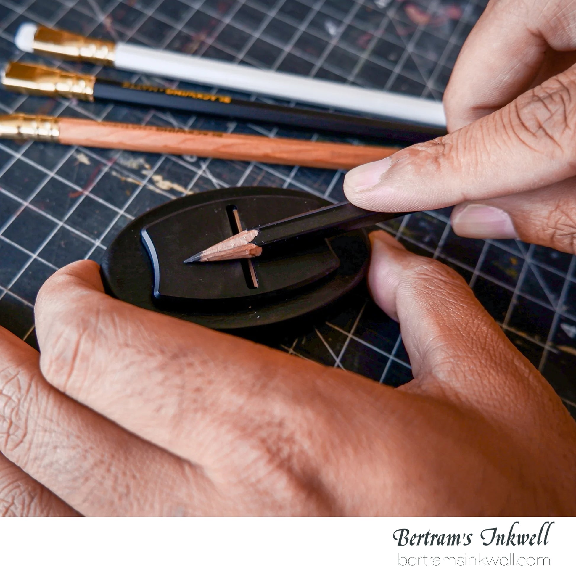 Create custom bespoke pencil points tailored to your specific needs. Made from black anodized aluminum and includes a matching black wooden base.
