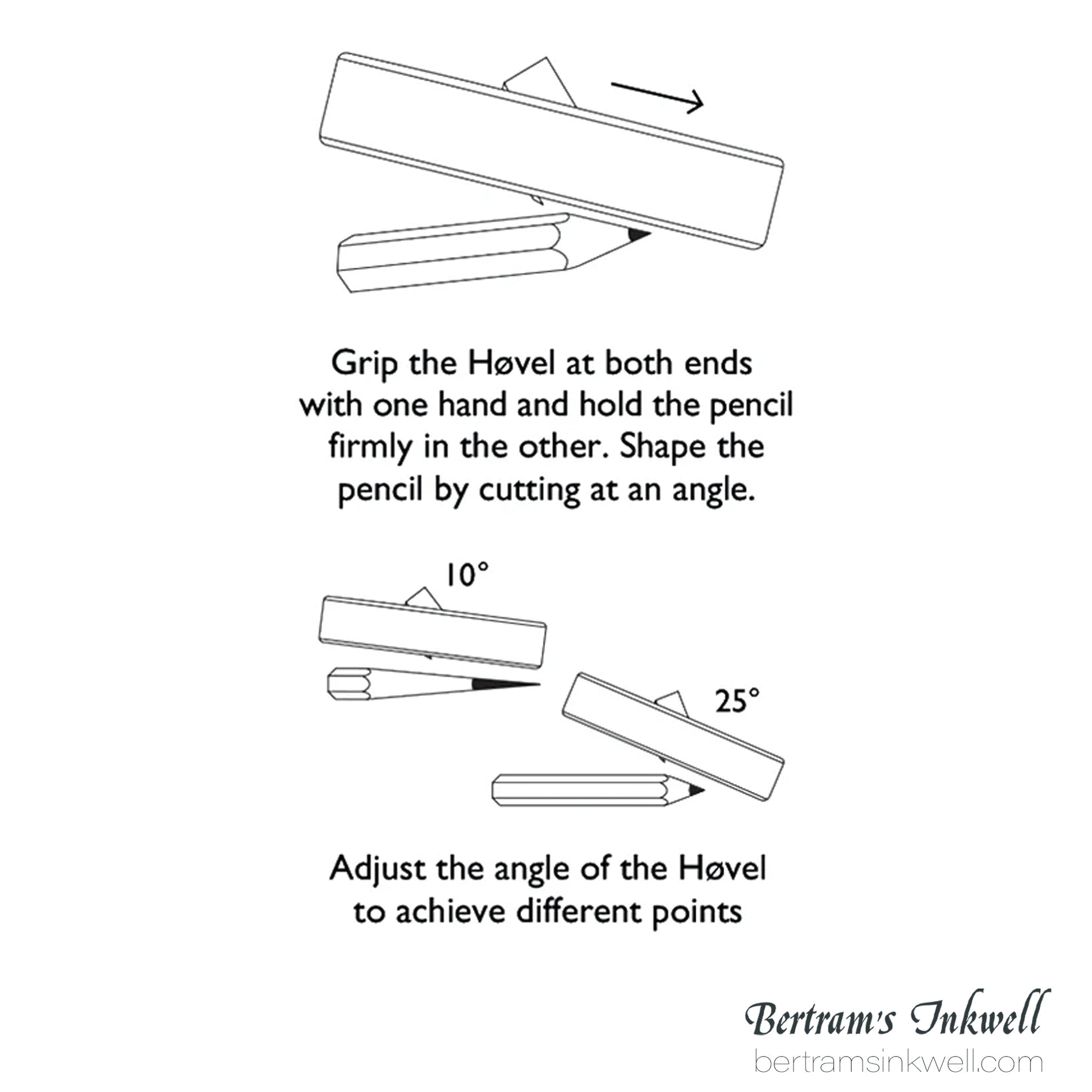 Create your custom point by holding the Høvel at both ends with your dominant hand and shaving directly away from yourself until you've reached your desired point. Adjust the angle of the Høvel and the depth of the blade to achieve a variety of different points.