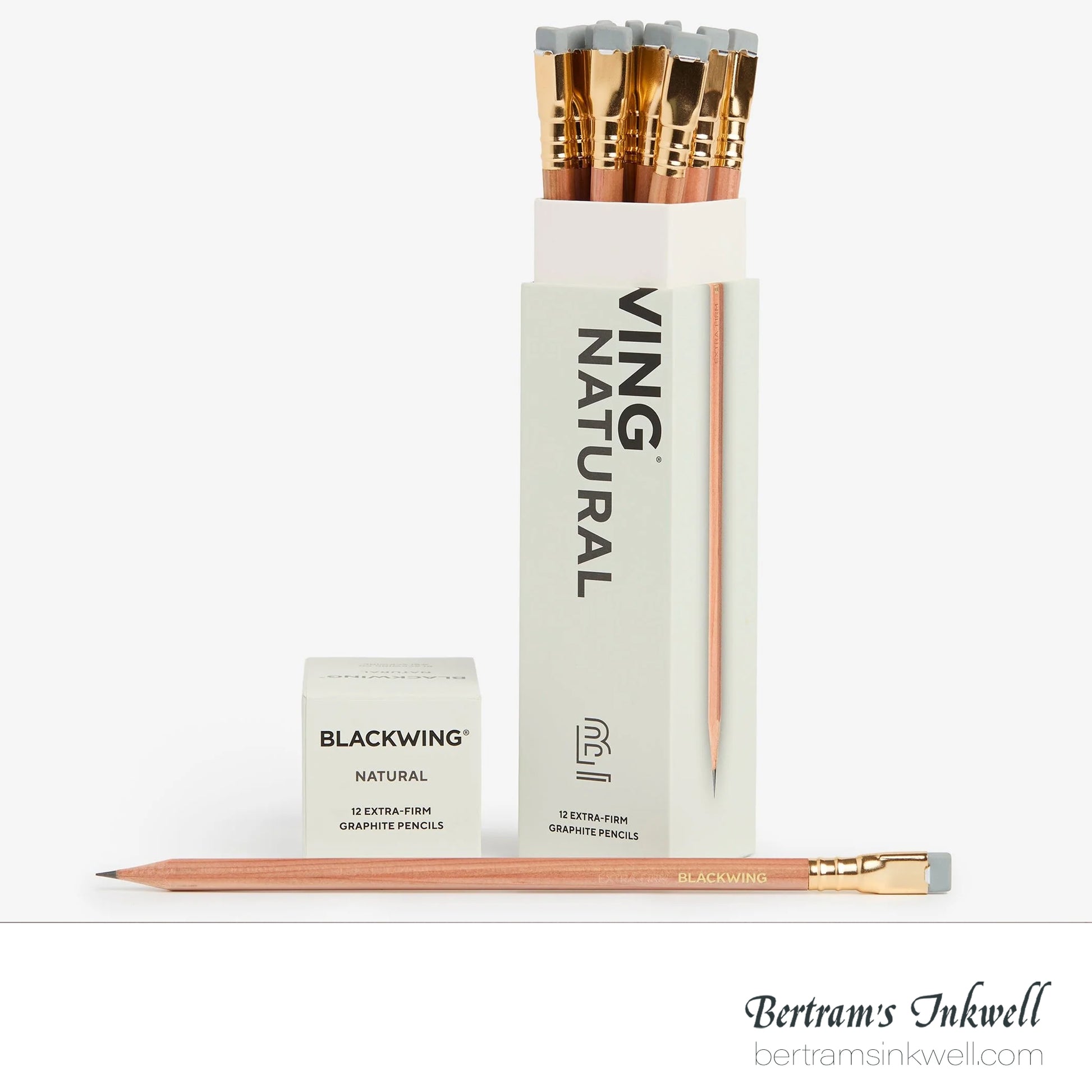 The Blackwing Natural includes our popular extra-firm graphite that works well for extended writing and detailed line work. Each pencil features an exposed Incense-cedar barrel with a subtle clear matte finish, iconic square Blackwing ferrule and grey eraser.