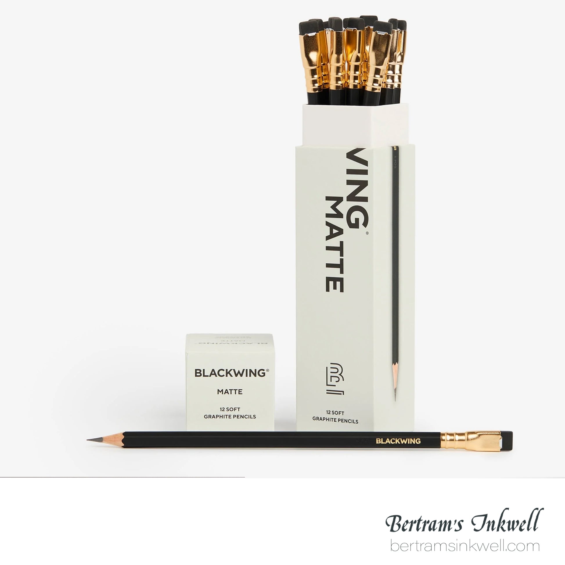 Blackwing Matte pencils come in a 12-pack gift box that also doubles as a pencil cup. The Blackwing Matte has the soft same graphite formulation as the since renamed "Blackwing Palomino." Features a Graphite Identification Stamp indicating its "SOFT" graphite core.
