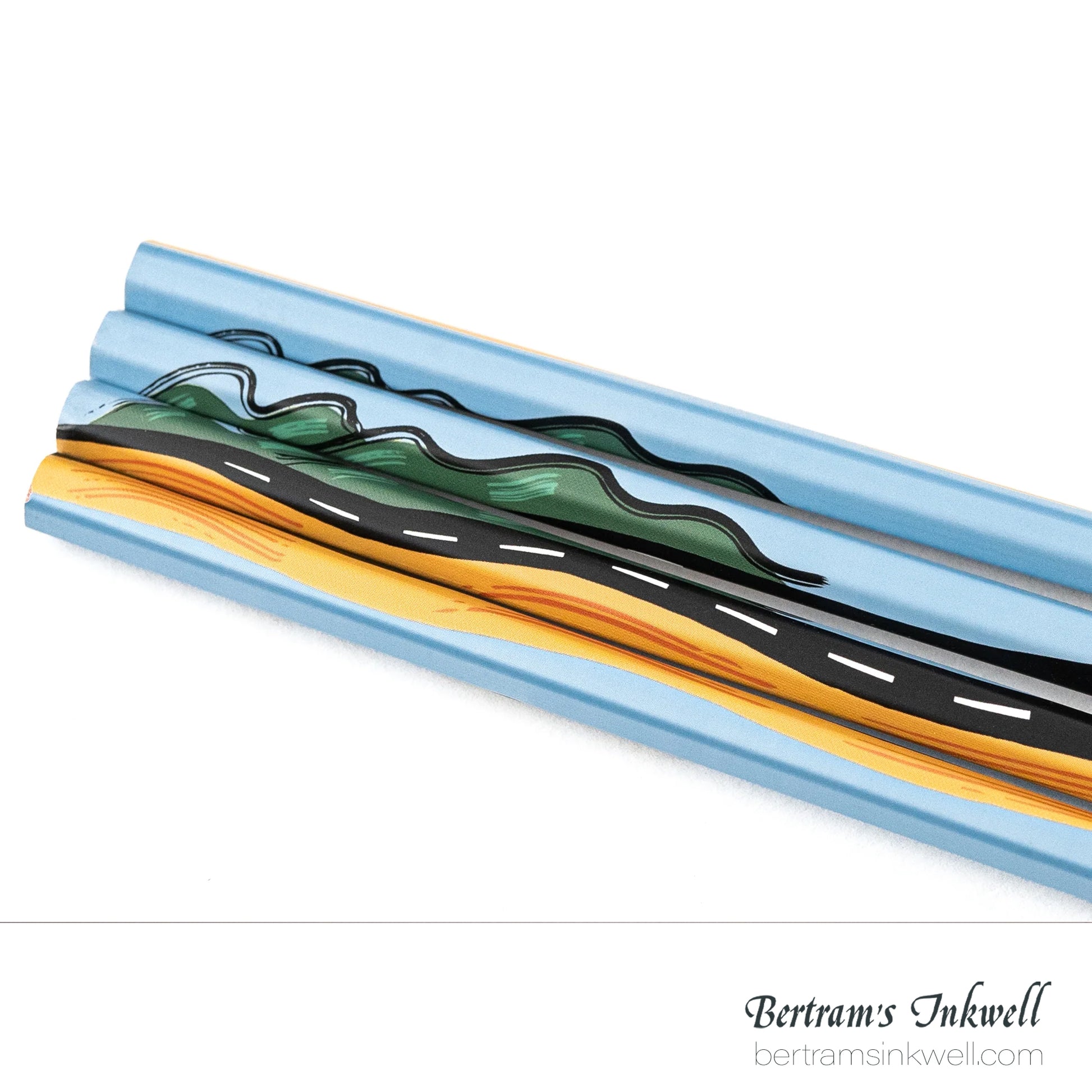 Tribute to Woody Guthrie. Illustrated design inspired by This Land’s “ribbon of highway,” “endless skyway” and “golden valley." Features our balanced graphite.