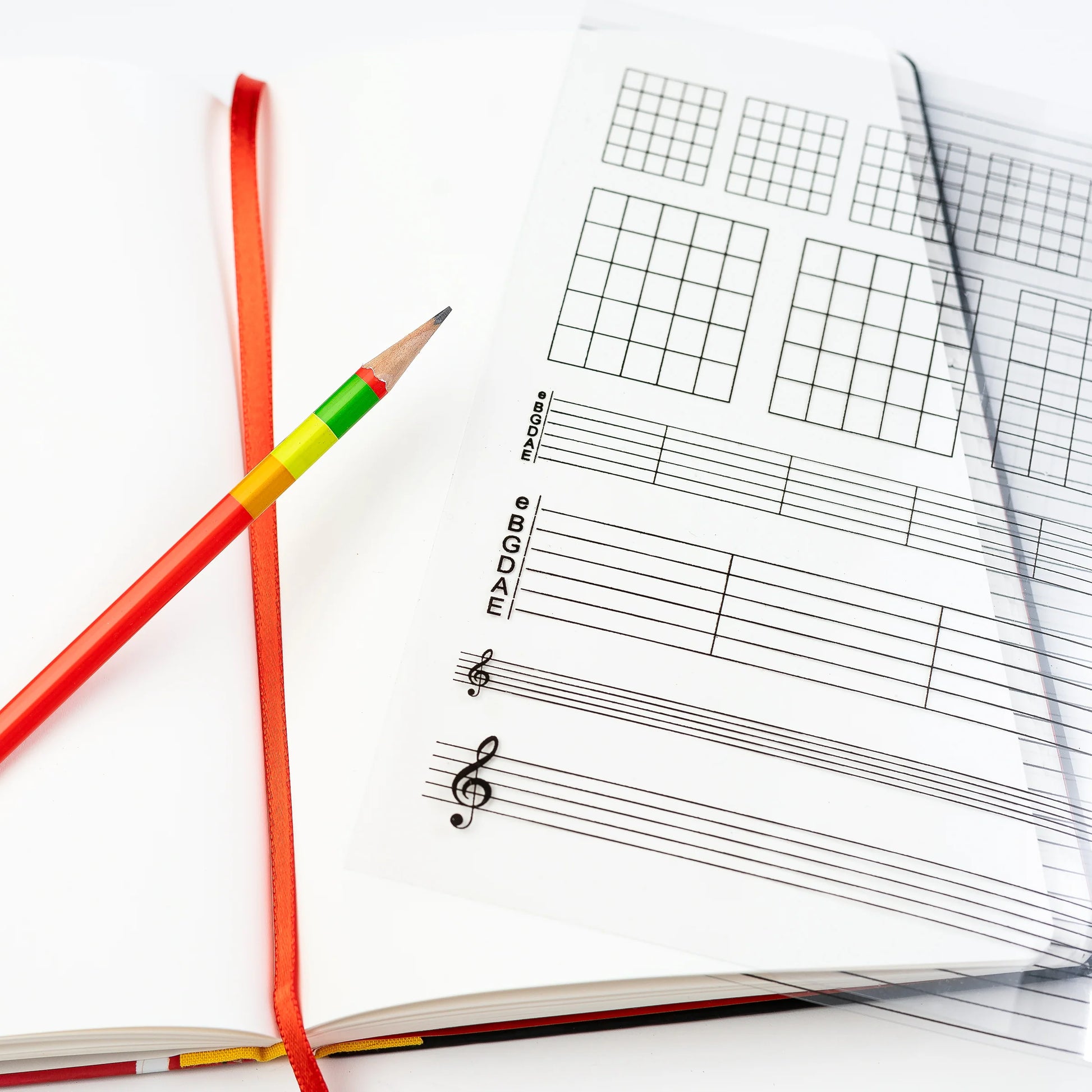 We designed this notebook with the help of the Harrison family to be the perfect songwriter’s companion. Each notebook features 160 pages of blank 80 GSM paper and includes one of our songwriter’s template inserts. The insert lets you customize the layout of your pages to suit your specific writing style. Each notebook also comes with a sticker set so you can decorate the cover just like George decorated his guitar “Rocky.”