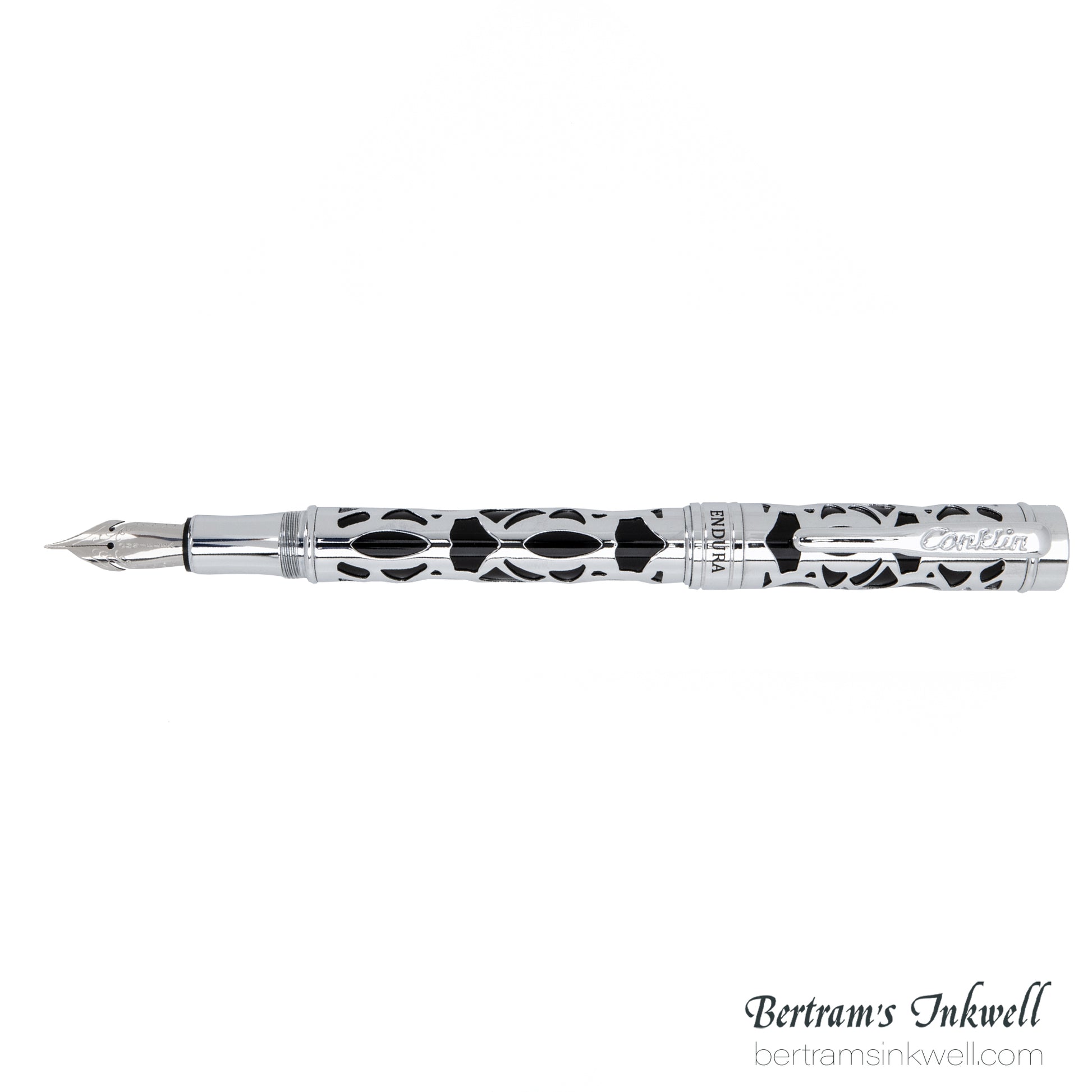 The Conklin Pen Company was established in 1898 during the golden era of fountain pens, and is still regarded as one of the most prominent pen manufacturers today. Deco, a design era that began in the mid-1920’s, at the height of Conklin’s fountain pen business, was a large influence on the modern art world from architecture to fashion. Conklin pens were no exception, as they were a significant contribution to the creative new age. Conklin’s new Endura Deco Crest is the ideal revival of that exciting period. Great concepts and innovative ideas will stand the test of time. The Conklin Pen Company of Toledo, Ohio, USA built and earned a reputation of high quality and careful work-manship that made one proud to own a genuine Conklin pen. Unfortunately, the Conklin Pen Company ceased production in 1955. The brand was brought back to life when the company was purchased in 2000. Yafa Pen Company , owner and world-wide distributor of the Conklin brand since 2009, is proud to utilize its 43 years of experience to restore the quality and dedication of the original Conklin Pen Company to produce fine pens that are treasured for generations. It is very exciting to revitalize the original designs with their elegant and sophis-ticated look with the greatest attention to details and quality. From 1660 to the late 19 th century filigree was ornamental work made with grains or beads. It was very popu-lar in Italy, France and Portugal as well as India and Asia. Today filigree/overlay is a form of intricate metalwork usually of fine wire of gold, silver, copper or metal, and is used to decorate various surfaces.Filigree can be applied to any ornamental openwork of delicate or intricate design. The beauty of filigree craftsmanship is undeniable. The first Deco Crest™ pens were manufactured by Conklin Pen Company back in 1905. Through the years the Deco Crest™ kept its place in Conklin’s collection by virtue of its beauty and durability. The Conklin Pen Company , originally released the ever successful Endura in 1924 and the Endura line continued to expand and grow. Based on the original models, the Endura has all the aesthetic design features which made the pen such a timeless classic. By combining these two famous models, today Conklin Pen Company is proud to introduce Endura Deco Crest™. The collection is available in three gorgeous colors (blue, black and orange) with three finishes (rose gold, chrome and gunmetal). Crafted from hand-made European high-grade, hand-turned and hand-polished resin and accented with metal overlay, the barrel brilliantly reflects light off of its surface, enhancing the stunning colors. Lustrous plating adorns the clip, band, trim and overlay, enhancing the elegance of each Endura pen. The collection is available in Fountain and Ballpoint pen. The fountain pen has a premium JoWo stainless steel nib personalized with the Conklin name, the historic “Toledo, USA” mark, and a special crescent-shaped breathing hole. The stainless steel nib with iridium tip is both smooth and dependable, available in Extra Fine, Fine, Medium, Broad, Stub, and Omniflex. Fountain pen is filled by either ink cartridge or threaded ink converter (included). Ballpoint pen uses a Parker -style ballpoint refill (included). Each Conklin pen is sold in a luxury blue gift box. The legend of over a century lives on!