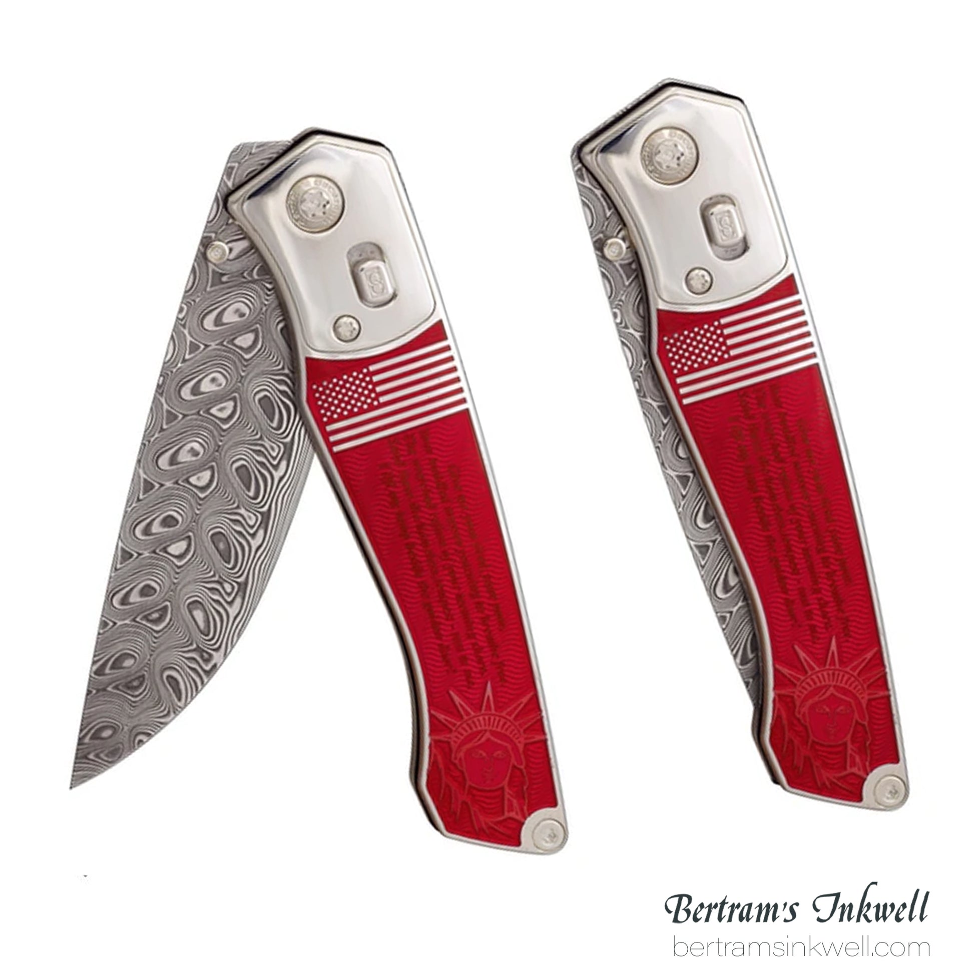 David Oscarson Ellis Island Translucent Ruby Red Hard Enamel Folding Knife