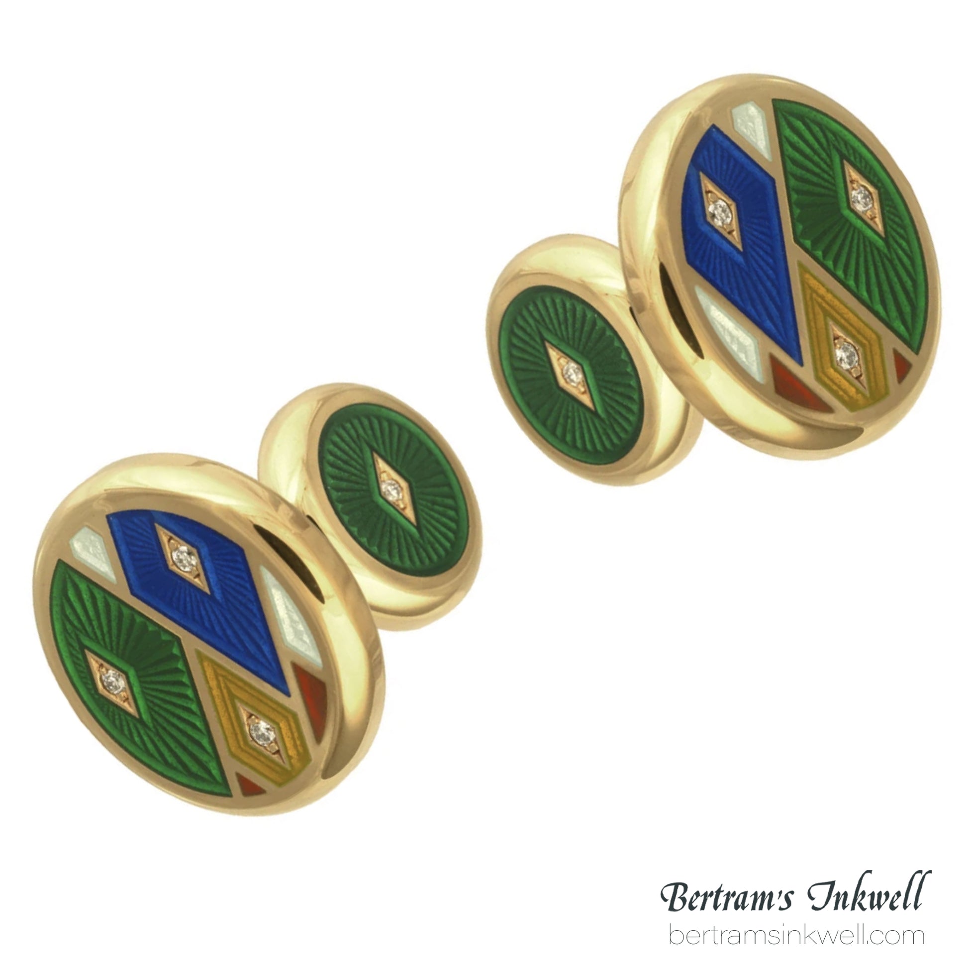 David Oscarson Harlequin Emerald Green with Diamonds and Gold Vermeil Cufflinks