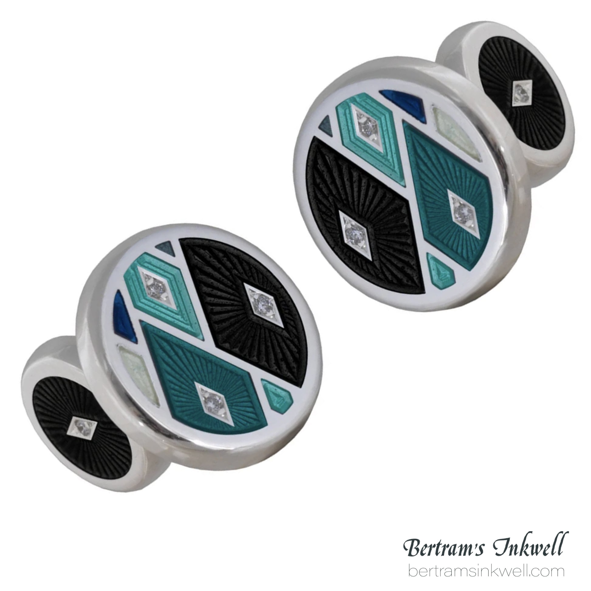 David Oscarson Harlequin Onyx and Teal with Diamonds Cufflinks