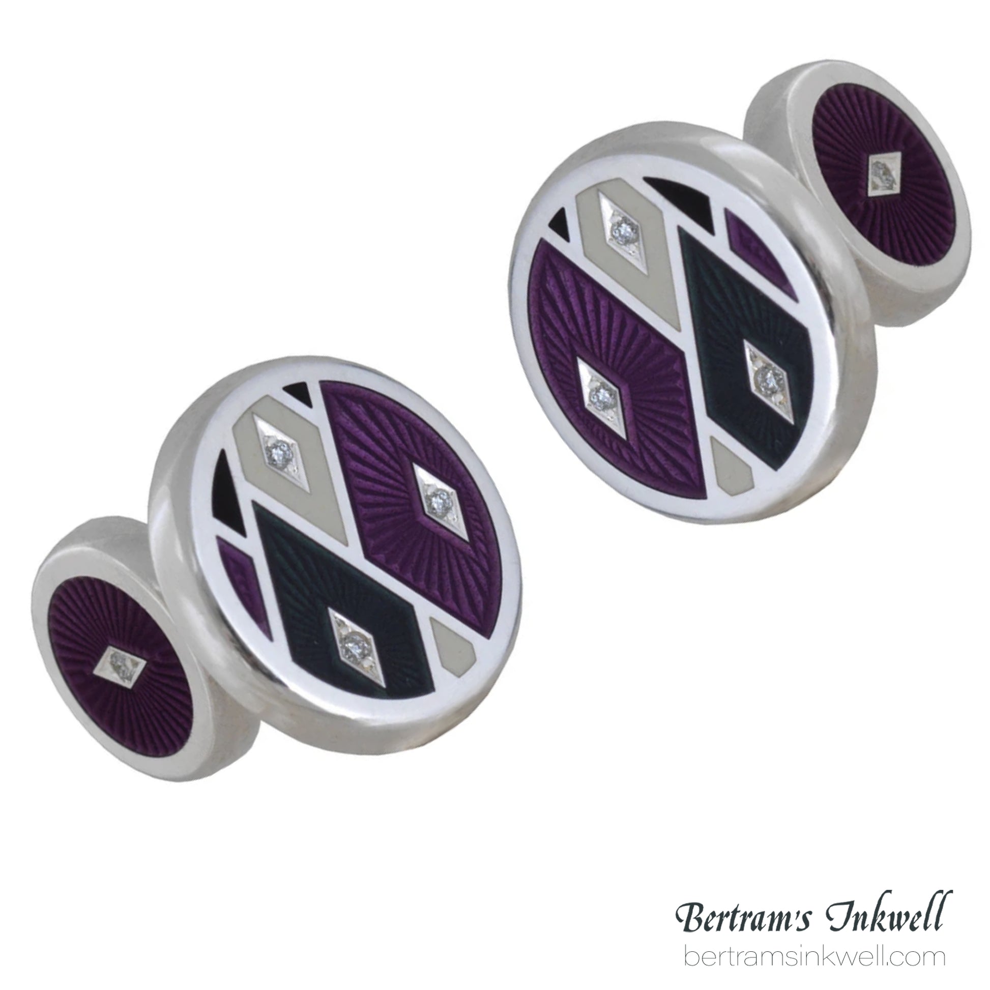 David Oscarson Harlequin Violet and Mossy Black with Diamonds Cufflinks