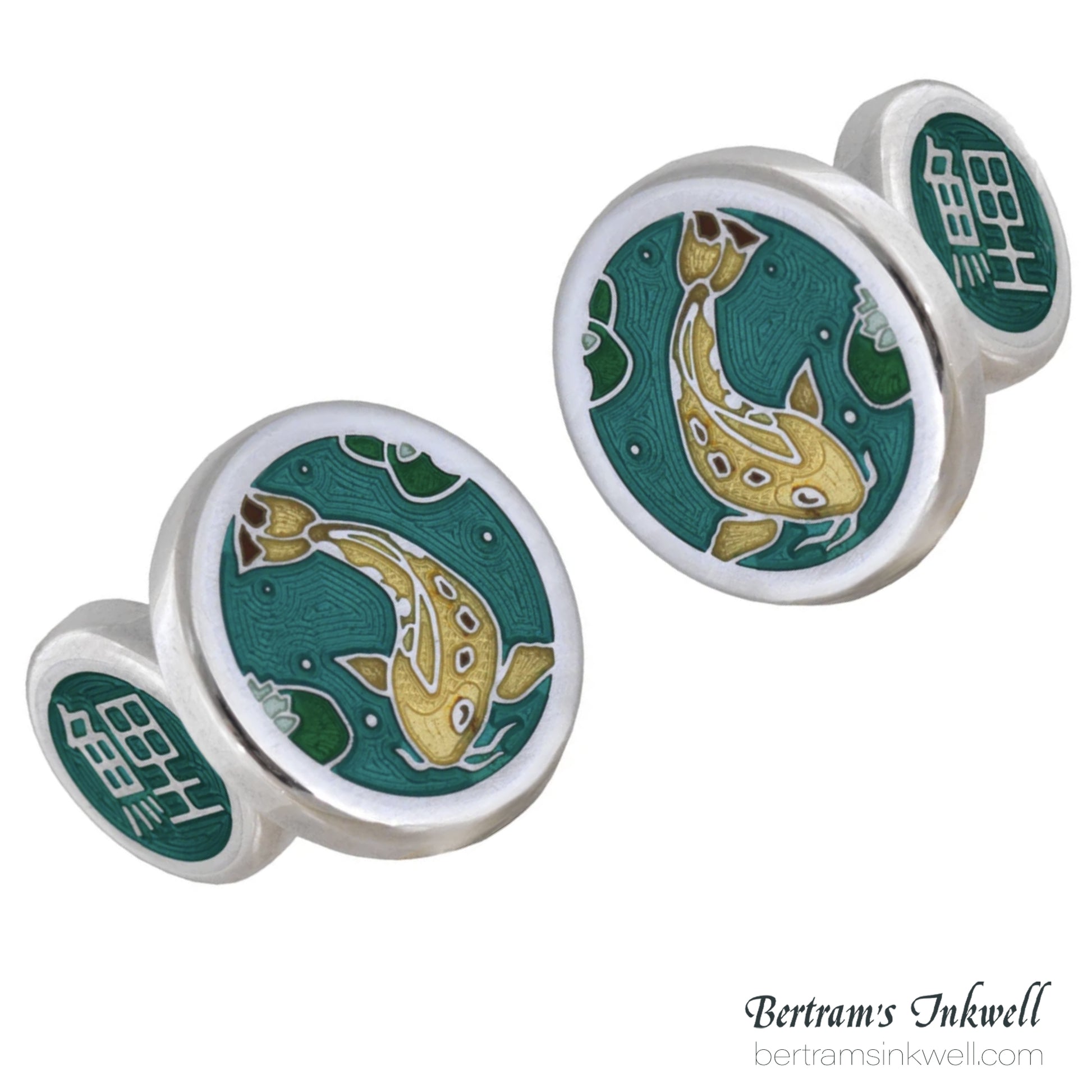 鯉, meaning Koi, appears in high relief on the back side of the cuff link.