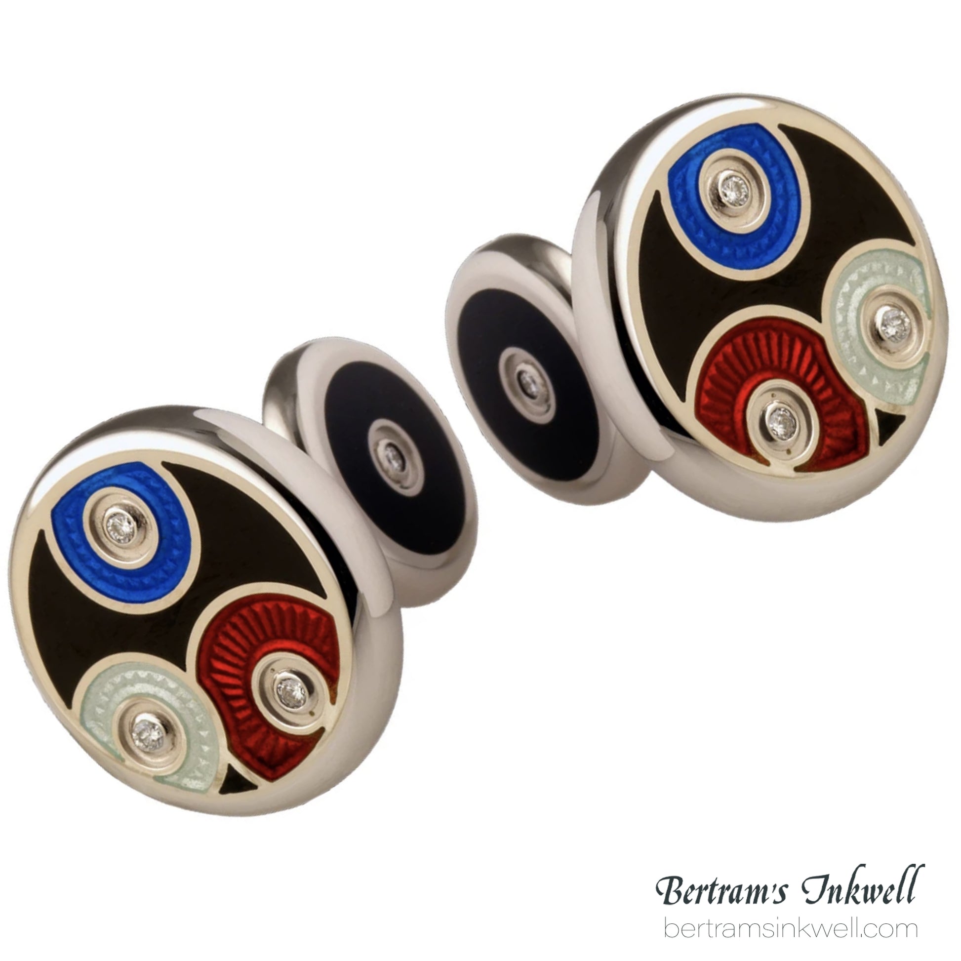 David Oscarson Pierrot Pierrette Monochromatic Black with Diamonds Cufflinks