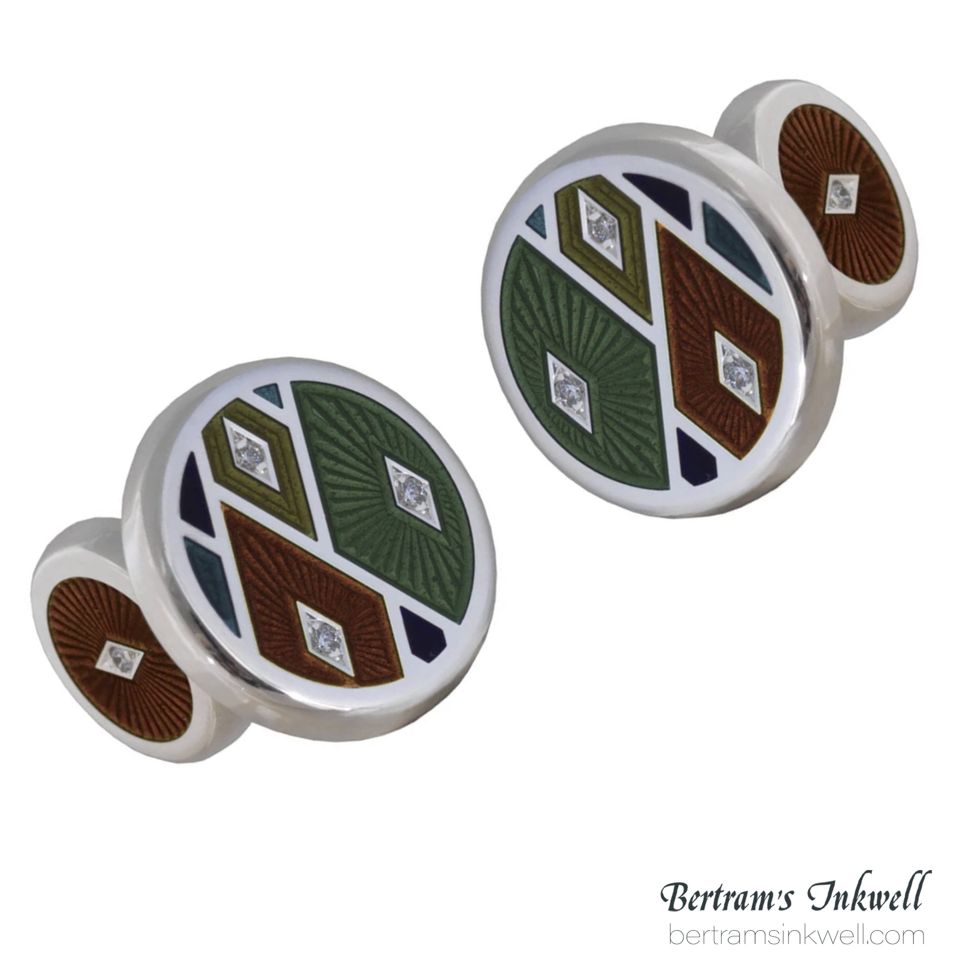 David Oscarson Harlequin Olive Green and Liquid Coffee with Diamonds Cufflinks