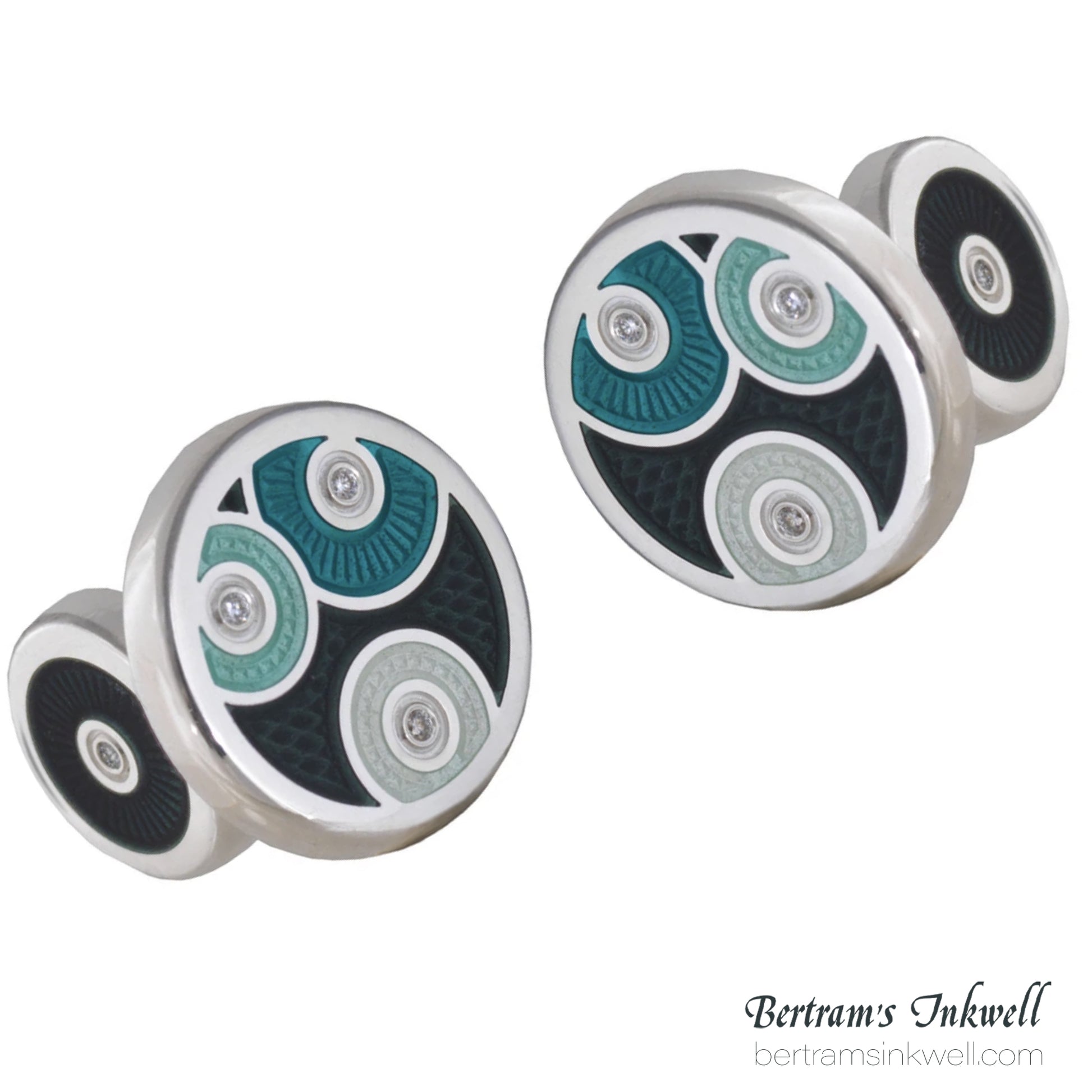 David Oscarson Pierrot Pierrette Onyx and Teal with Diamonds Cufflinks