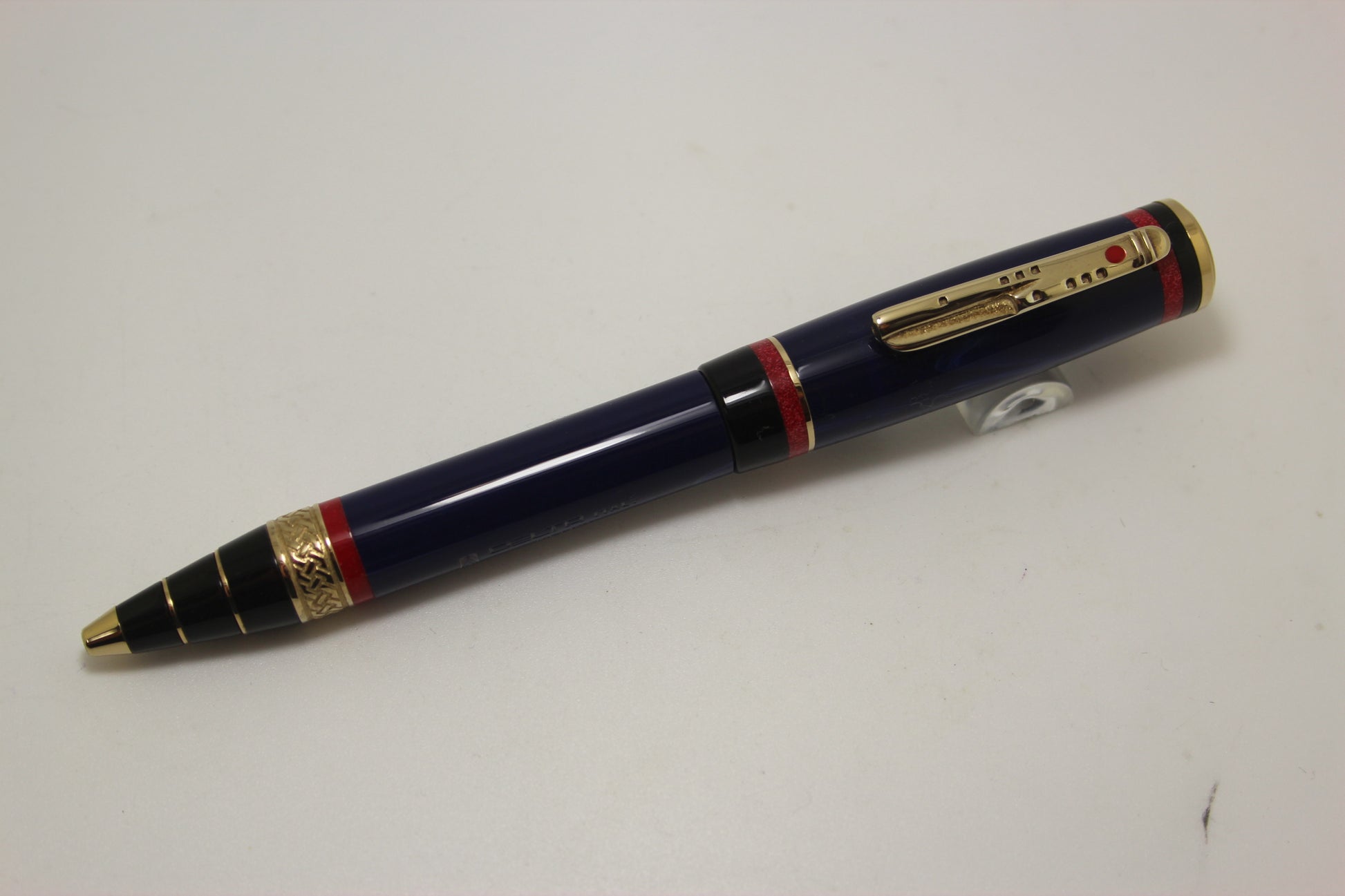 Special Limited edition made exclusivley for Bertram's Inkwell, only 18 of these pens were made. Beautiful detail and masterful craftsmanship. Pen uses Parker style refills or Monteverde for Parker Super Broad.