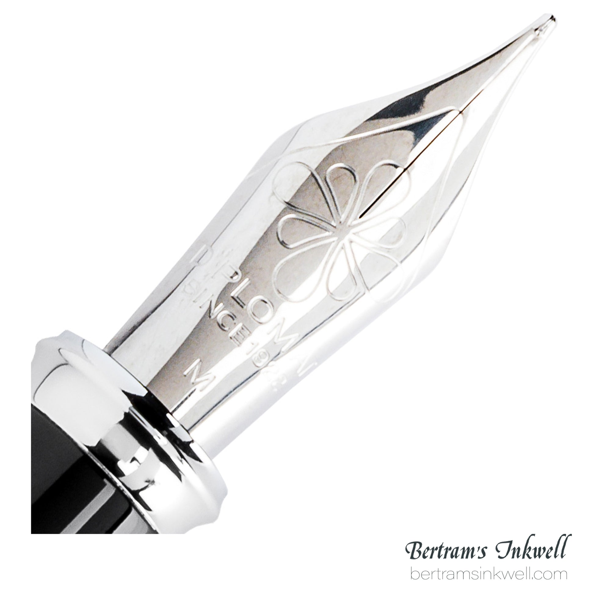 With a short rotation of only 1/3 turns, the cap can be easily and silently unscrewed from the barrel. The spring-loaded clip is made of solid metal, and the iconic Diplomat shape of the clip is stylized with a flower logo.