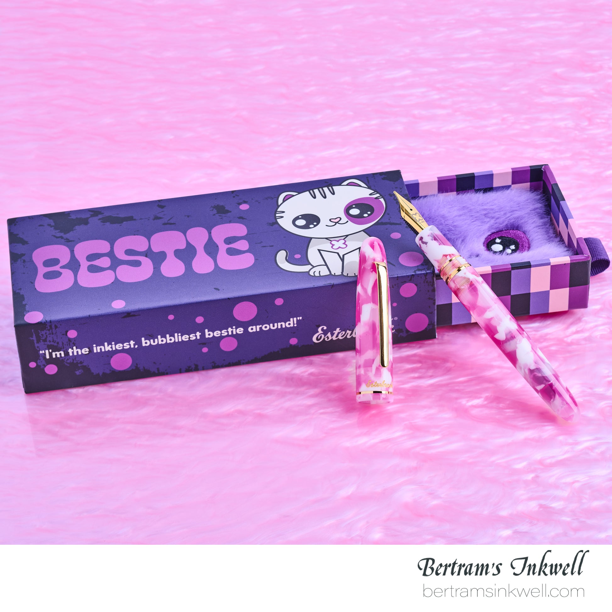 Crafted from acrylic, each pen features natural variation, ensuring no two Besties are exactly alike. With a familiar balance and comfortable weight, these pens are perfect for journaling, long writing sessions, or everyday use. Each Bestie pen is housed in a playful drawer-style box with a soft, furry “bed” inside for a charming unboxing experience.