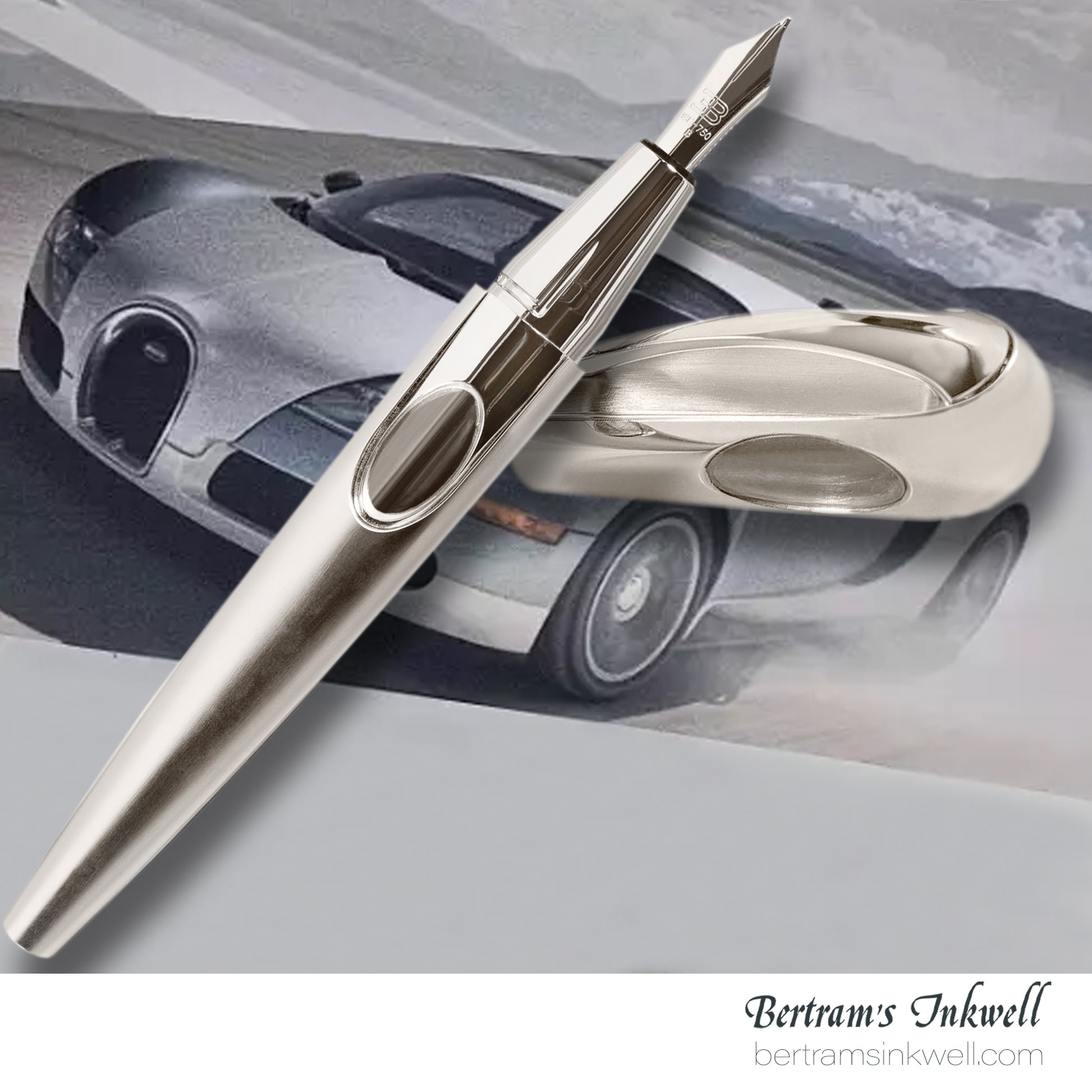 The complex barrel design is obtained by the ideal crossing of curved spines, and the lateral polished surfaces sink in the pen's body like hypothetical air intakes following the body of the Veyron.  In addition, the fin in relief on the barrel is taken from the car's line that runs all over it.
