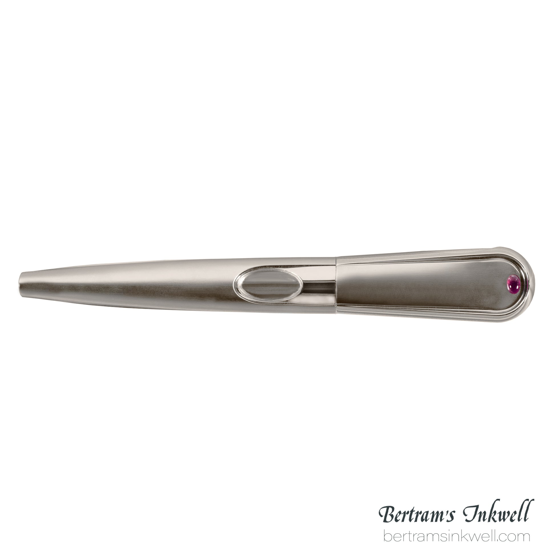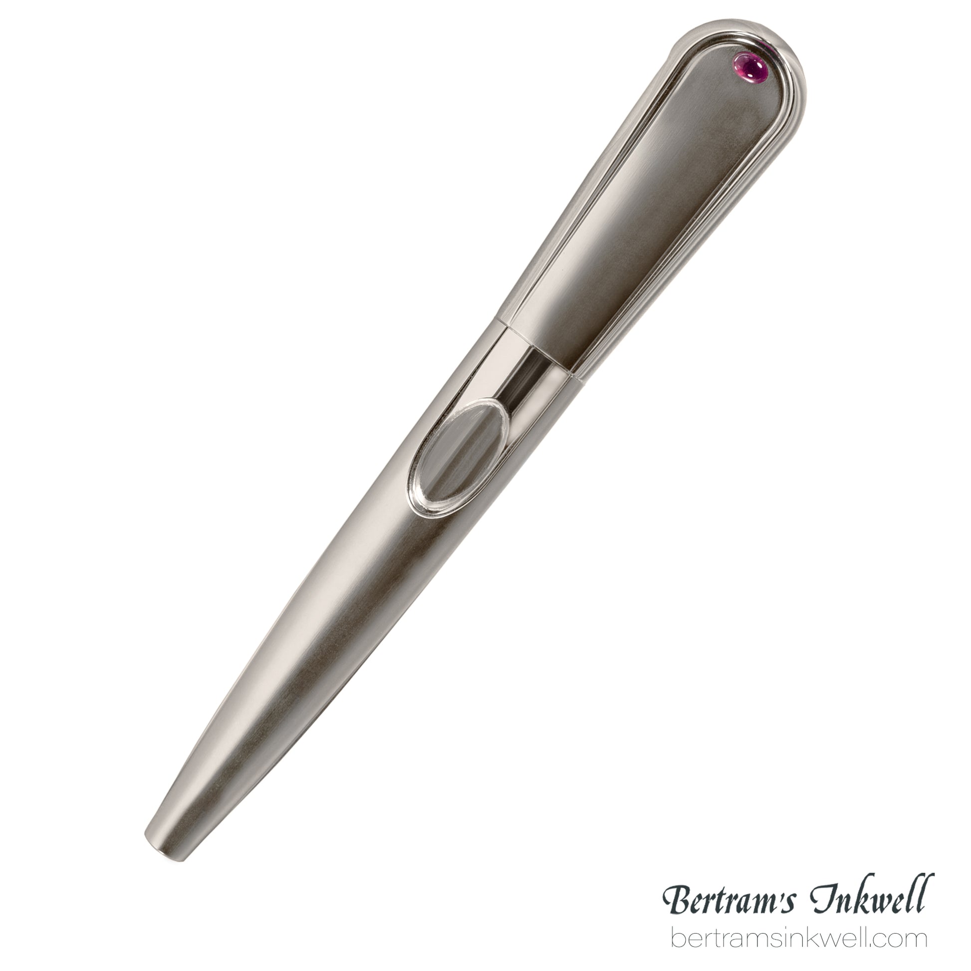 To ensure the perfect closure of the cap, and a precise line-up of the different parts, an unusual and advanced bayonet system has been created, made possible by using a stainless steel micro-sphere. It is inserted in the cap within an elastic ring system that allows its breathing while the ball runs along the mill-made groove on the steel nib grip up to the point where it secures the cap with a soft click.