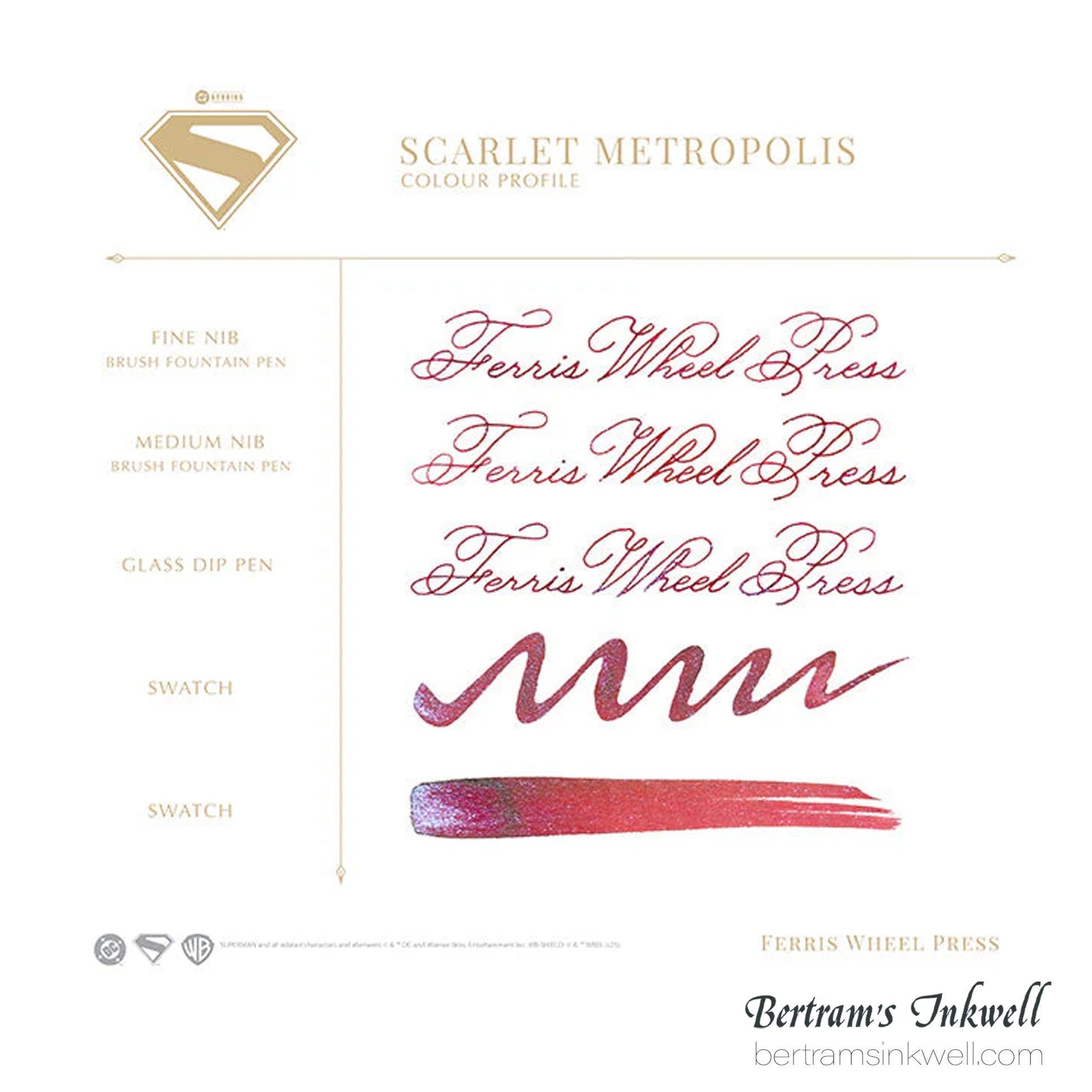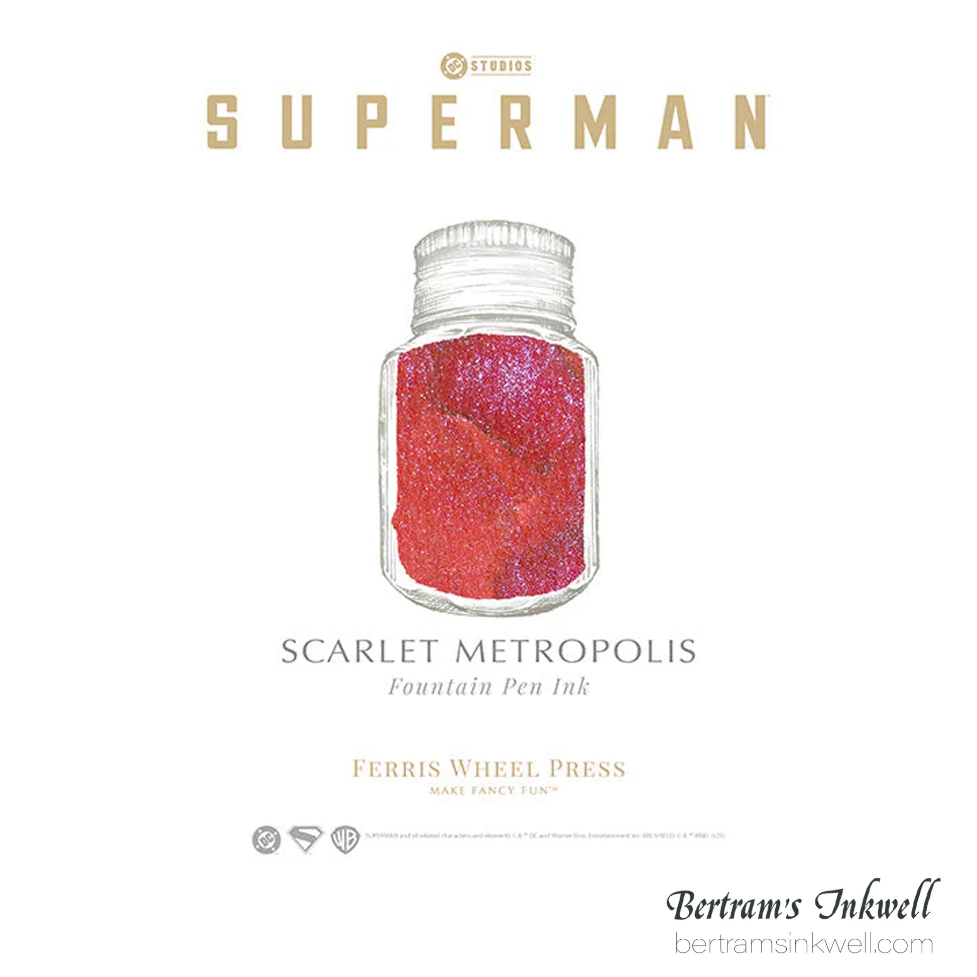 Illuminate your writing with the light of the stars. The Ferris Wheel Press x Warner Bros Superman - Scarlet Metropolis 28ml metallic fountain pen ink transforms every word into a shimmering masterpiece. Whether you're a dedicated fountain pen enthusiast, skilled calligraphy artist, or passionate Superman collector, this exclusive ink deserves a place in your premium writing collection.