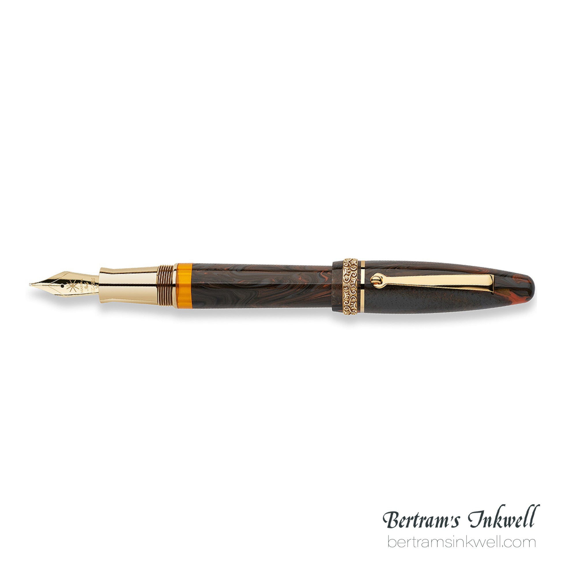 Maiora Ultra Ogiva Golden Age 2.0 "KP" Earth/Rosegold Fountain Pen is available with a 14K nib in a stunning array of point sizes and boasts a piston-filling system with an ink monitoring window. The Ogiva Golden Age is a new frontier, a new look, and a new work of art, entirely handmade in Italy.