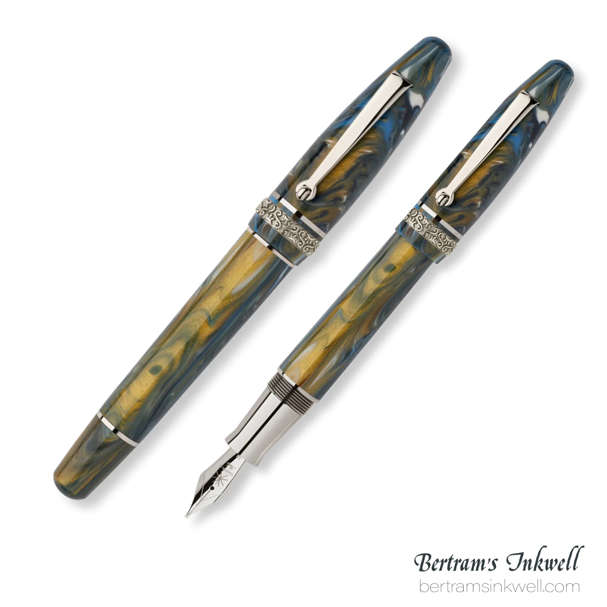 Maiora Ultra Ogiva Golden Age 2.0 Wind/Palladium Fountain Pen is available in a stunning array of point sizes and boasts a cartridge-converter filling system.