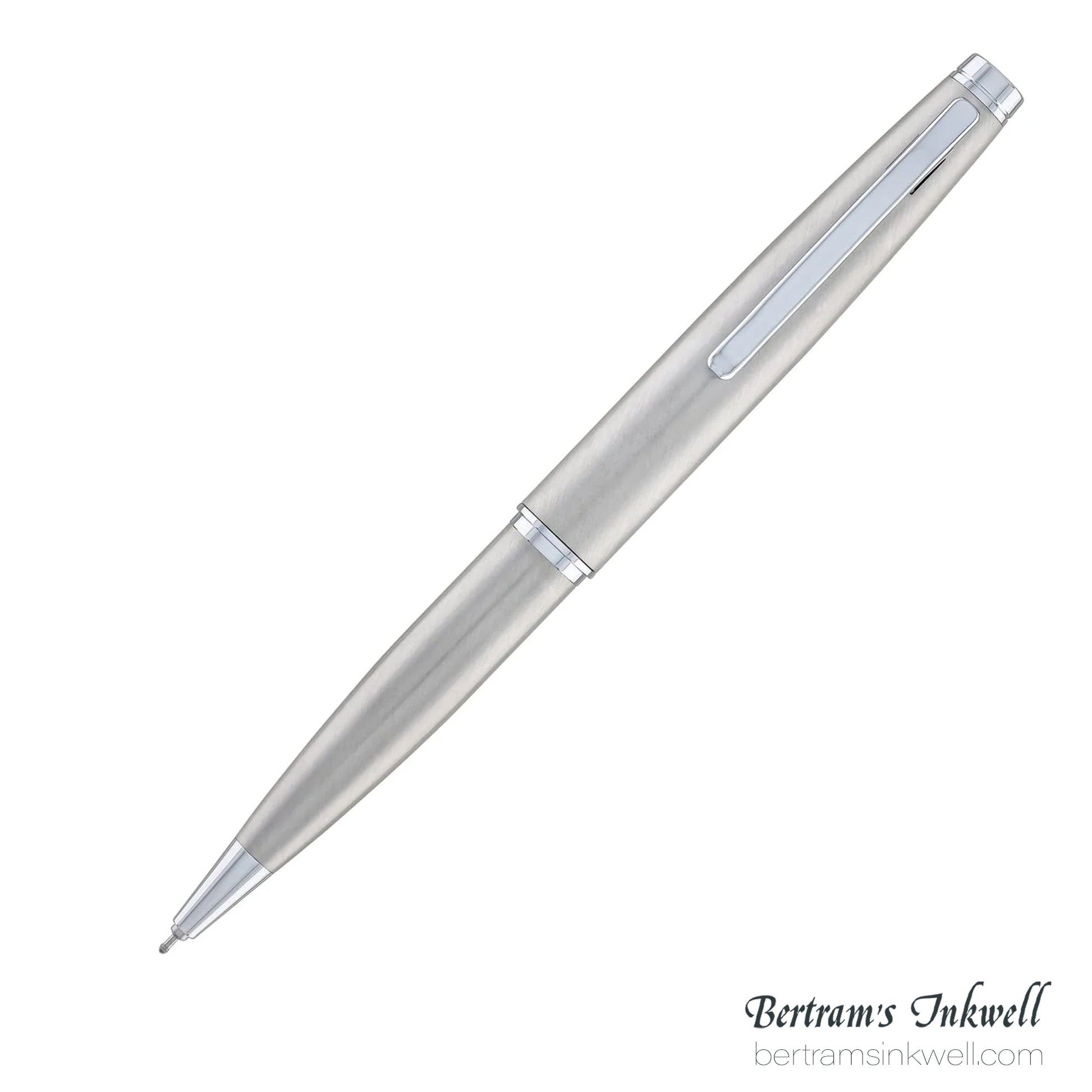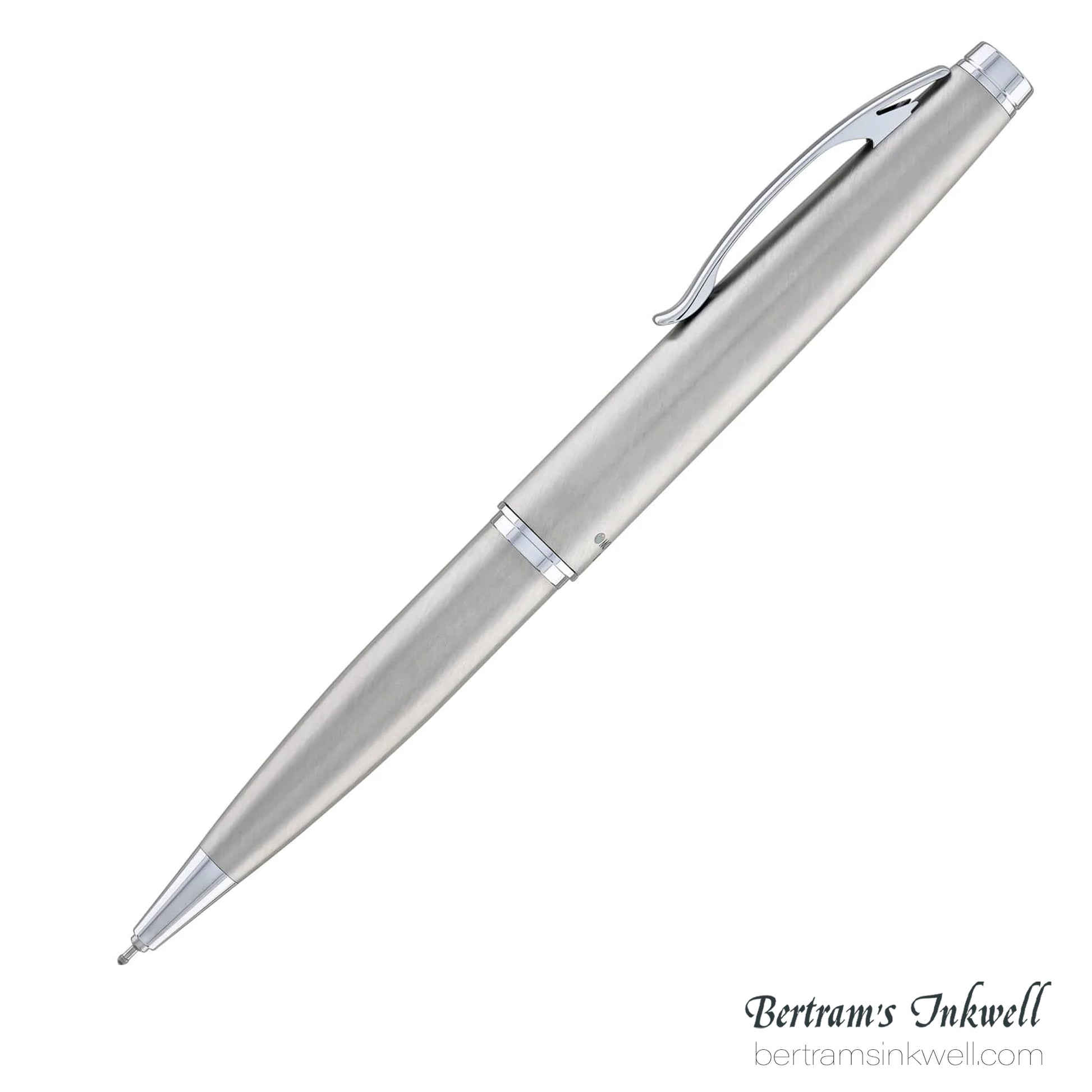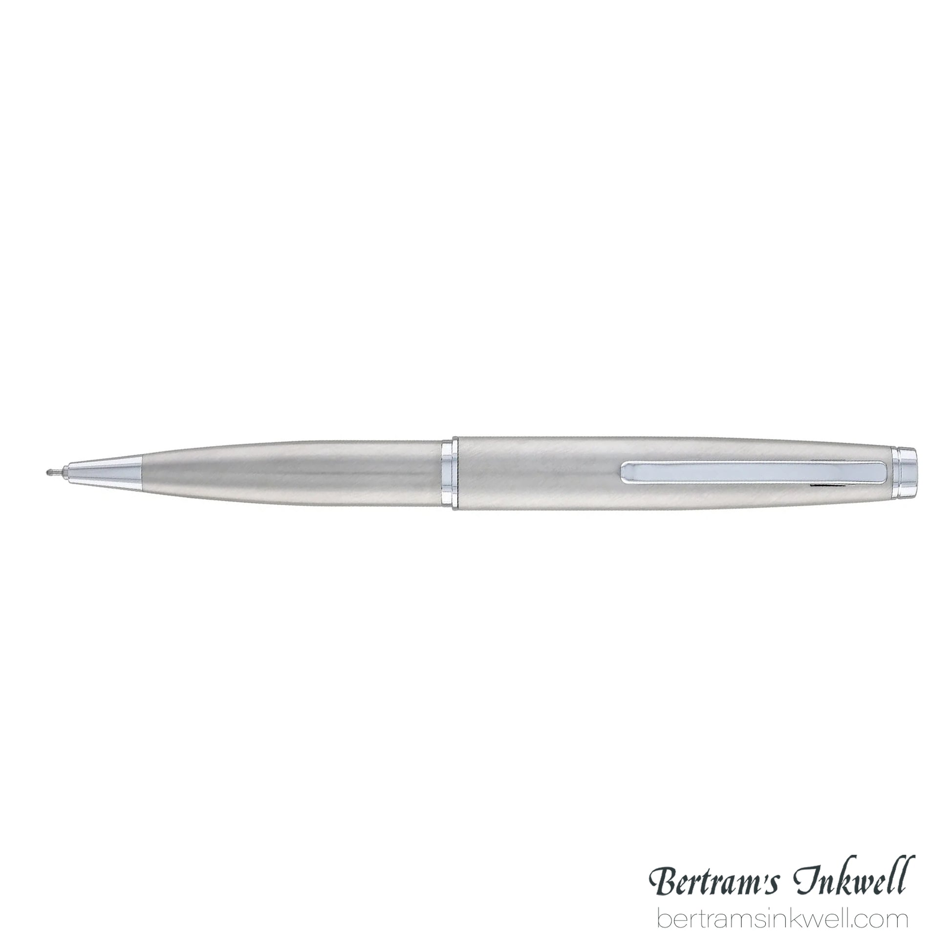 Additionally, the natural weight of stainless steel contributes to a balanced feel in hand, enhancing the overall writing experience with a sense of solid craftsmanship and reliability. The stainless steel pen is further complemented by its chrome trim, which adds a touch of modern sophistication and gleam, subtly enhancing the pen’s refined look.