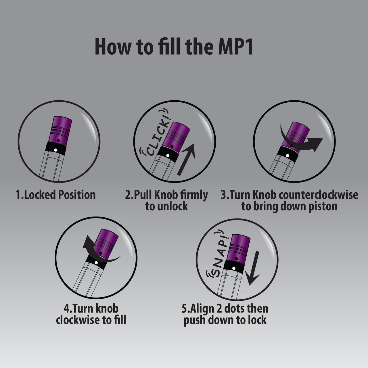 The MP1 is the first internal piston fountain pen ever produced by Monteverde USA. Released as part of Monteverde's 25th-anniversary celebration, the MP1 represents a significant leap forward for fountain pens in its class. Featuring innovative Lock-ItTM piston technology that tightly secures the piston knob between fillings, the MP1 is distinguished by its durable anodized aluminum cap and radiant crystal-clear barrel. Fitted with a German-made #6 JoWo nib, each pen delivers consistent, reliable ink flow regardless of your writing speed or style.