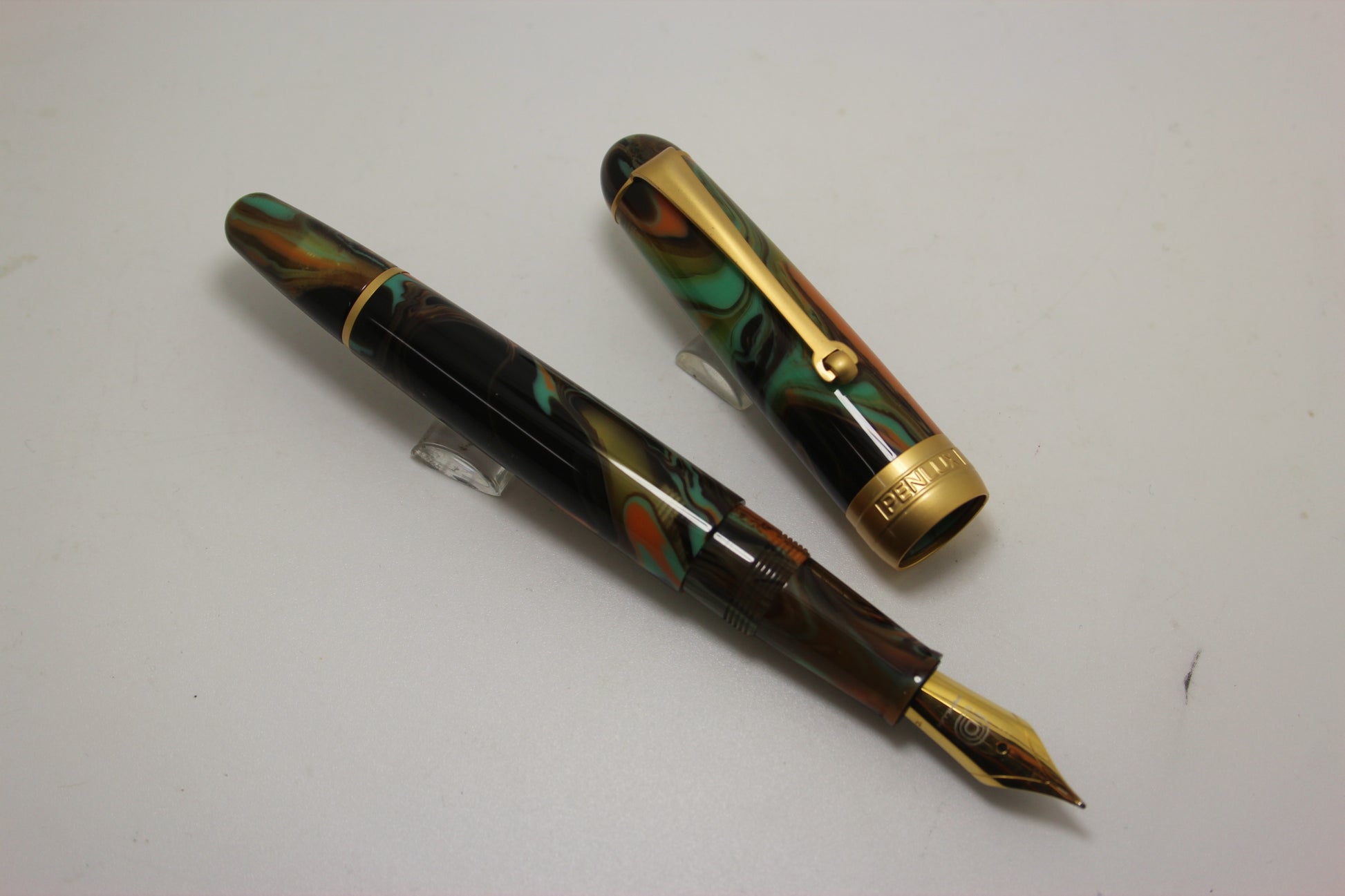 Penlux Masterpiece Delgado-Peacock Fountain Pen Gold plated medium nib with internal piston filler.