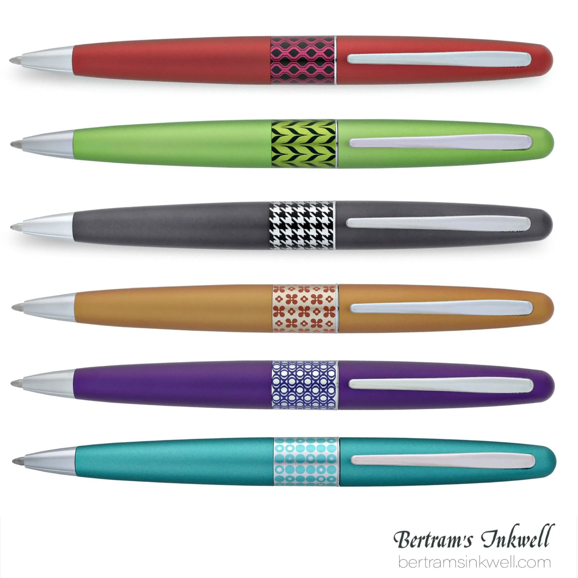 The Pilot MR Retro Pop Collection brings together the vibrant colors, energy, and motifs of the late 1960s and 1970s with the same materials and quality craftsmanship of the MR line of pens. These writing instruments feature brass barrels and stainless steel accents and nibs of the MR Line, along with striking new pops of color and coordinating retro patterns on ‘middle ring’ designs. The Collection is available in 6 stunning matte finishes so you can select the perfect pen to ignite your creativity and writing. Elegantly presented in a black gift box and available in a variety of points. Refillable for continued use.