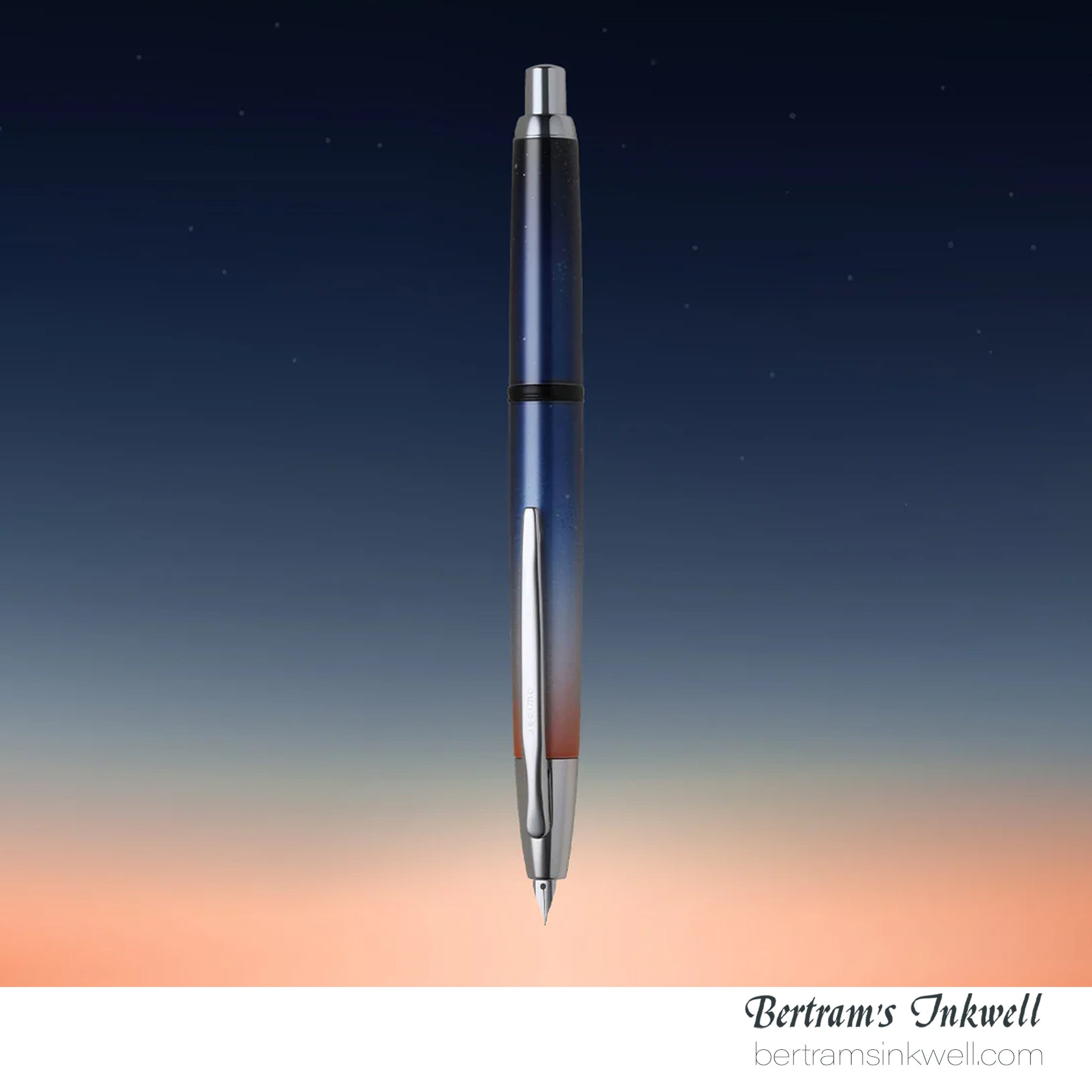 The aluminum body features a dusk-to-dawn gradient, a luminous transition from deep indigo to a warm coral-pink, evoking starlit skies giving way to the soft promise of morning. Layered atop the gradient, a rotary silk printing technique is used to depict subtle star patterns that shimmer quietly under light. The overall effect is refined, ethereal, and symbolic of new beginnings. Only 3,000 pieces will be released globally. Each is equipped with a rhodium-plated 18-karat gold nib (Fine only), and arrives in a special matching gift box containing a CON-40 converter, black ink cartridge, story card, use and care guide, and warranty certificate.