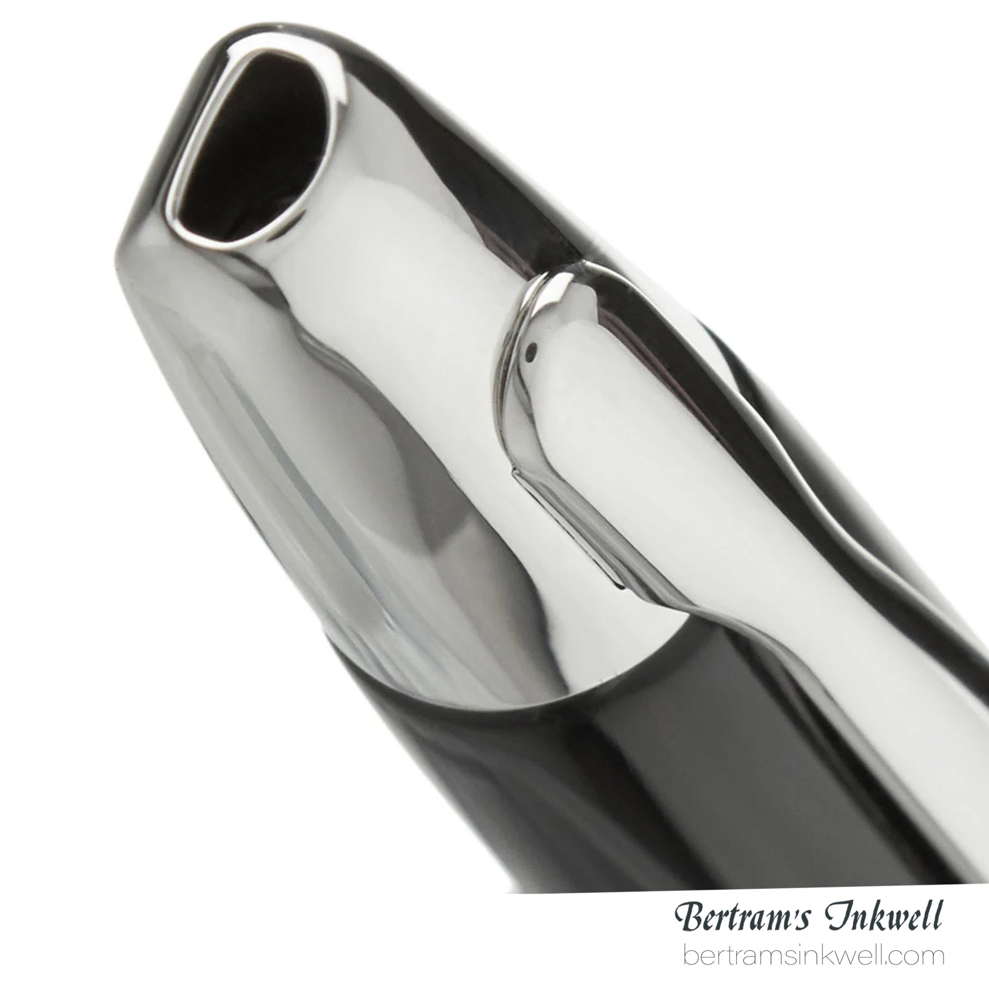 The Vanishing Point retractable fountain pen is a product rich in both history and performance. Its brilliant design and ingenious technology make it a pen for the new age. A larger size, durable metal body and attractive appointments make the Vanishing Point unmistakably unique. Available in black, blue and red barrel colors with gold or rhodium accents, black or blue carbonesque finishes with rhodium accents, and yellow, brown, raden, chrome, white and gun metal gray finishes with rhodium accents. All are available with an 18 karat gold fine, medium or broad nib. Each Vanishing Point fountain pen is beautifully merchandised in a gift box. Engraving is not recommended on this Pen