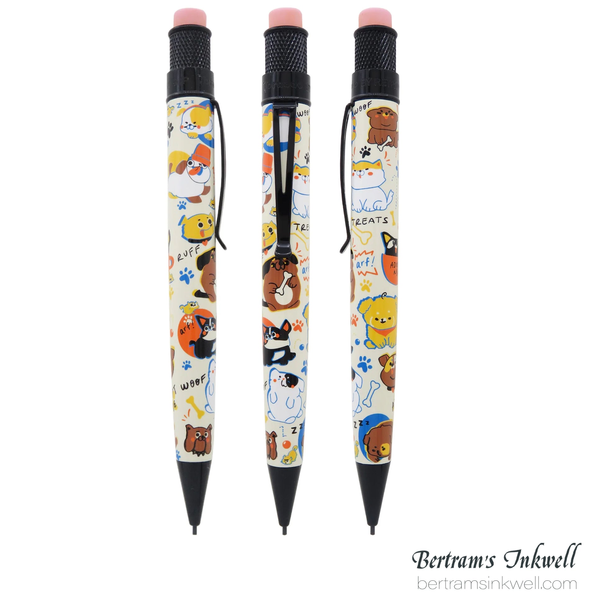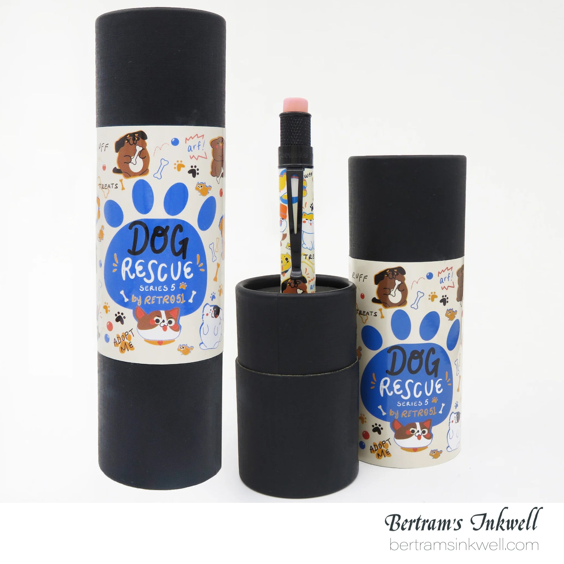 Introducing the latest Dog Rescue writing instruments from Retro51, featuring the most adorable dog illustrations. These charming pens showcase various breeds in endearing poses and delightful expressions, adding a touch of whimsy to your writing experience. The barrels are adorned with vibrant colors over a cream base, finished with a gloss clear coat, and complemented by sleek Black Stealth trim.