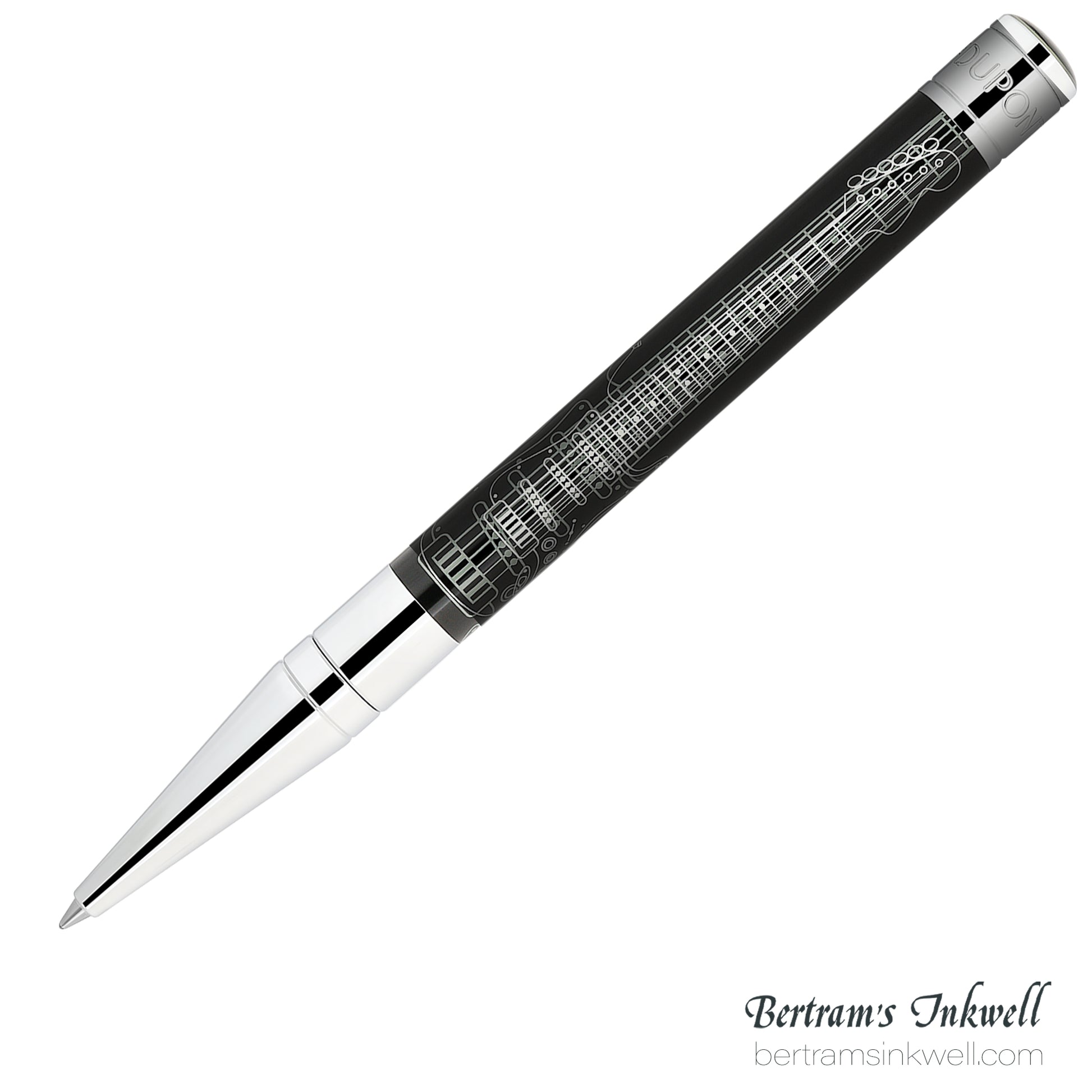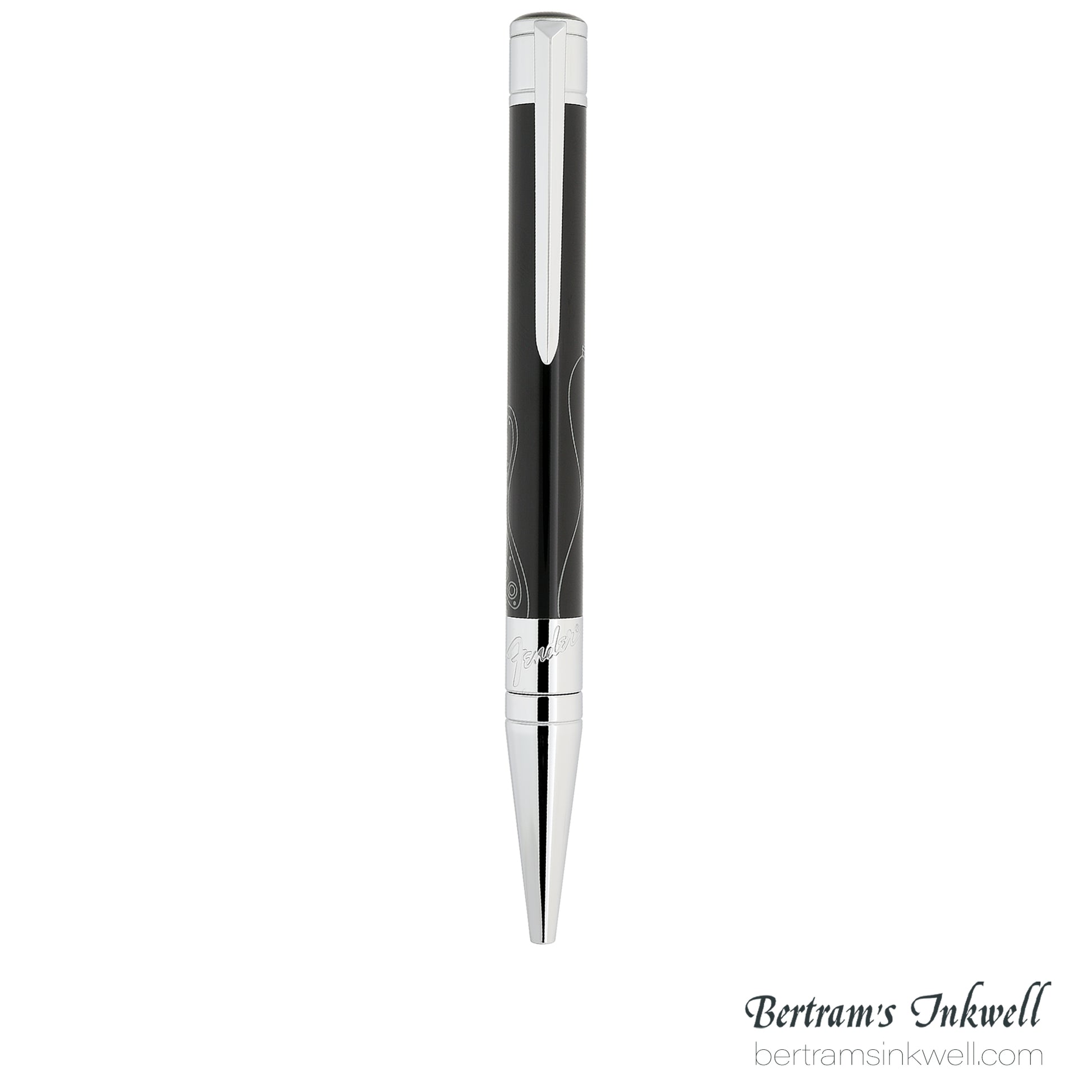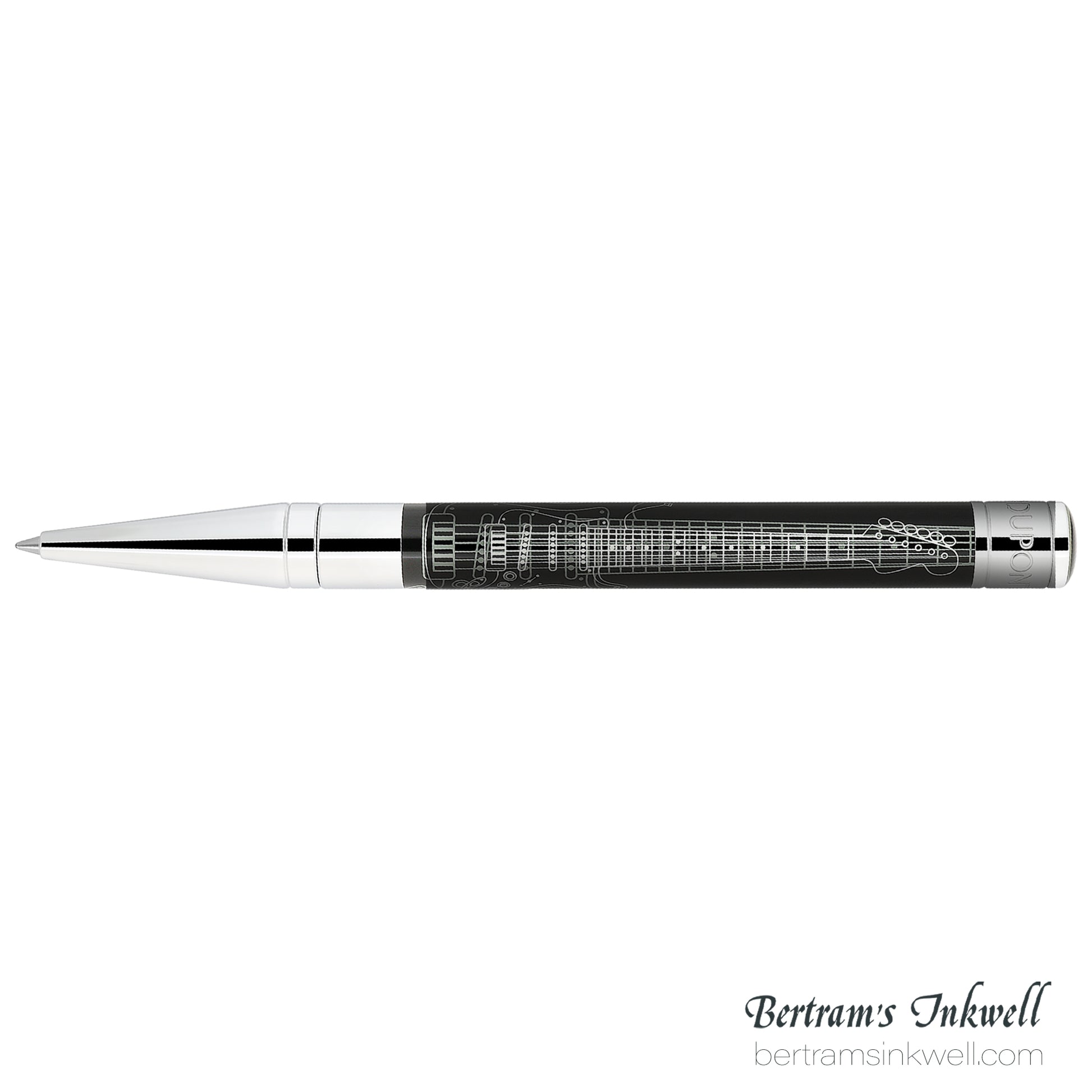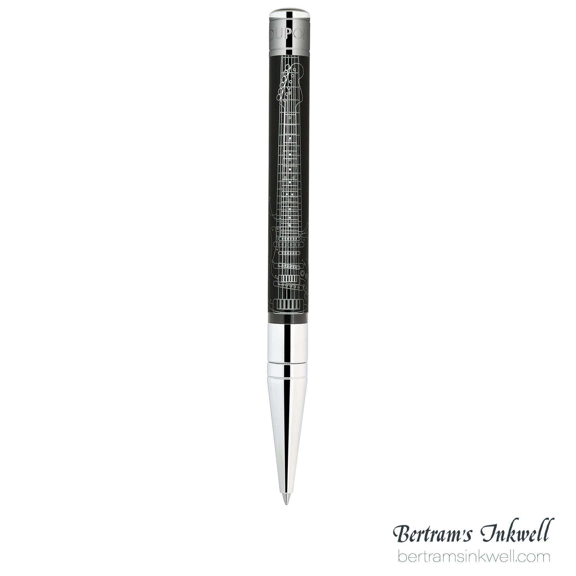 S.T. Dupont utilizes iconic know-how and expertise to showcase the silhouette of a Stratocaster against a sleek black lacquer background on the new Initial ballpoint pen (featuring an elongated body for a comfortable writing experience) along with the Biggy, Slimmy, and Twiggy.