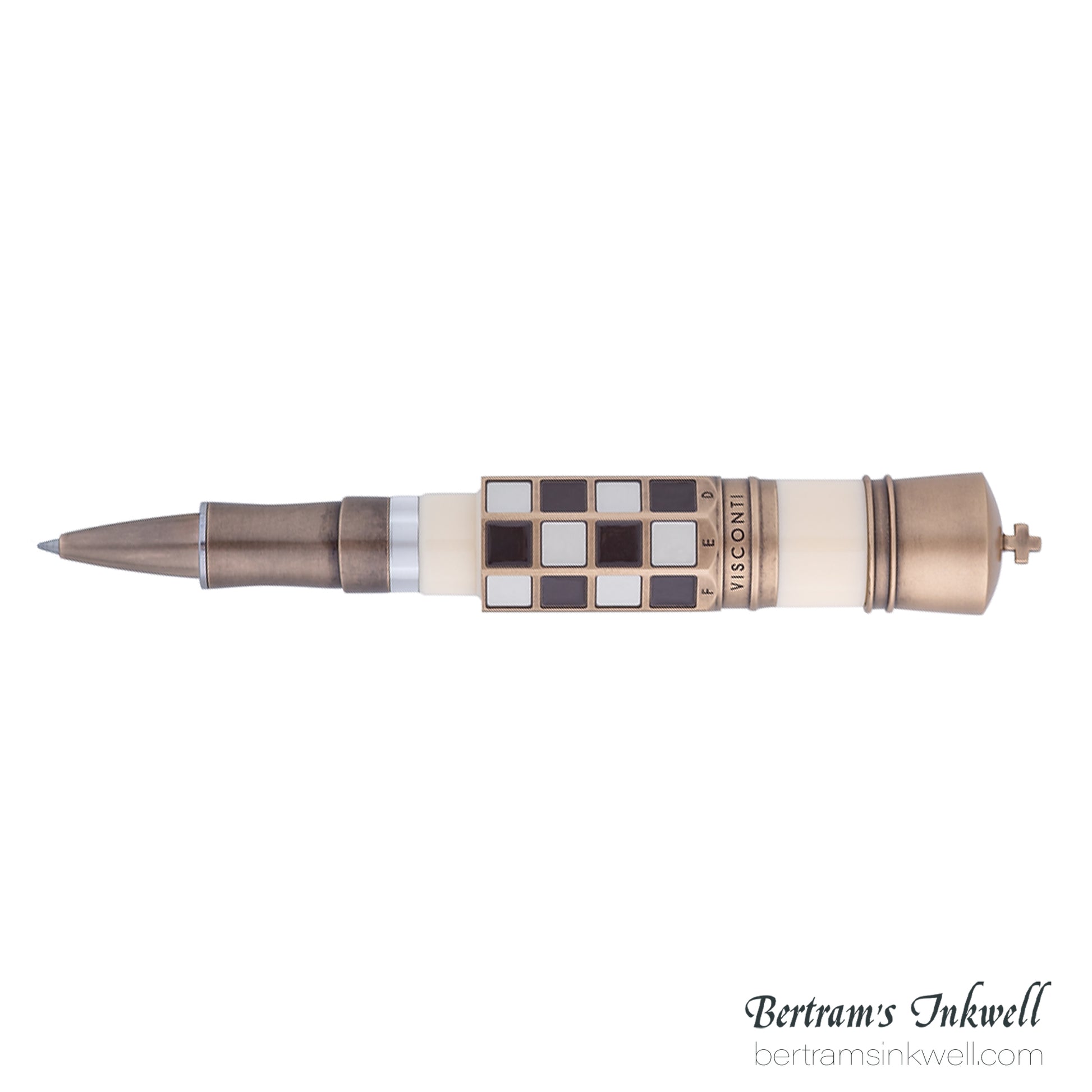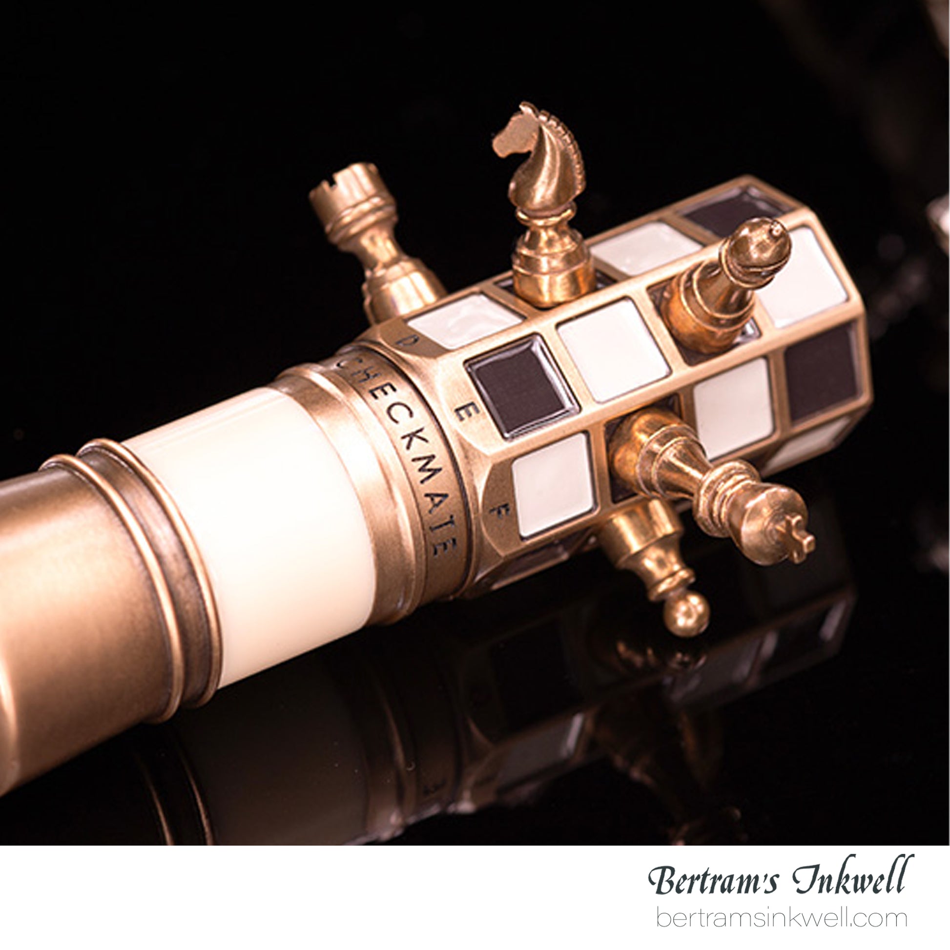 Crafted from fine bronze, the Checkmate pen is engraved with “Visconti” and “Checkmate,” markers that not only celebrate the brand but also distinguish the body from the cap, making it easy and intuitive to open. Its faceted body and cap feature a meticulously enameled checkerboard in contrasting hues, with each of the 64 squares perfectly detailed. Letters from A to H are engraved along its sides, recreating a traditional chessboard look, while a small marker aligned with the nib denotes “A,” indicating both the starting point of the chessboard and providing a reference for a swift opening. The crowning touch of this striking design are the symbolic Kings sitting proudly at both the cap and barrel ends as a constant reminder of victory and ambition.